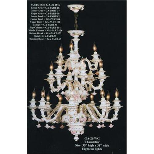 Capodimonte Chandelier with 18 Lights Size: 35" high x 31" wide Satisfaction Guaranteed All our capodimonte pieces are 100% authentic, made with the best craftmanship in Italy. Capodimonte is more than a century Italian style of the finest porcelain once reserved for kings and queens. The style became popular when the royal family in Italy fell in love with the beauty of Capodimonte arts. The selection you see is made by artisans, according to the same tradition dating back to the 18th Century.<BR>Free Shipping in the continental US