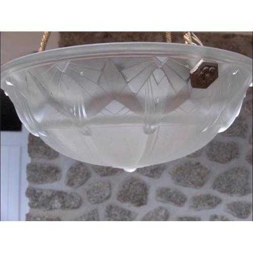 An absolutely stunning French Art Deco Suspension from the very famous MULLER FRERES France C1930.Beautiful geometric designed bowl ......Superb.Fully stamped for the maker and offered perfect.