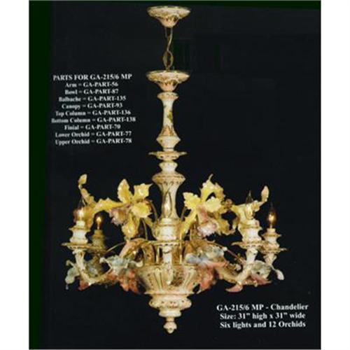 Capodimonte Chandelier with 6 lights & 12 Orchids Size: 31" high x 31" wide Satisfaction Guaranteed All our capodimonte pieces are 100% authentic, made with the best craftmanship in Italy. Capodimonte is more than a century Italian style of the finest porcelain once reserved for kings and queens. The style became popular when the royal family in Italy fell in love with the beauty of Capodimonte arts. The selection you see is made by artisans, according to the same tradition dating back to the 18th Century.<BR>Free Shipping in the continental US