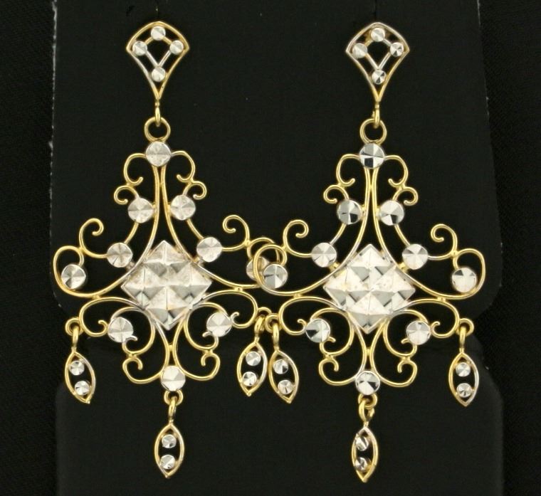 In 14k yellow and white gold. 1 3/4" long with friction backs. 3.8g.