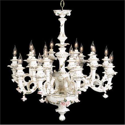 Chandelier with 16 Lights - in White & Gold Finish Size: 31" high X 31" wide Satisfaction Guaranteed All our capodimonte pieces are 100% authentic, made with the best craftmanship in Italy. Capodimonte is more than a century Italian style of the finest porcelain once reserved for kings and queens. The style became popular when the royal family in Italy fell in love with the beauty of Capodimonte arts. The selection you see is made by artisans, according to the same tradition dating back to the 18th Century.<BR>Free Shipping in the continental US