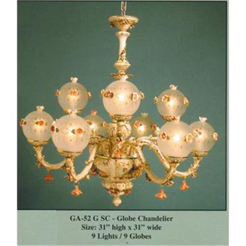 Capodimonte Chandelier with 9 Lights and 9 Globes (Closed) Size: 31" high x 31" wide Satisfaction Guaranteed All our capodimonte pieces are 100% authentic, made with the best craftmanship in Italy. Capodimonte is more than a century Italian style of the finest porcelain once reserved for kings and queens. The style became popular when the royal family in Italy fell in love with the beauty of Capodimonte arts. The selection you see is made by artisans, according to the same tradition dating back to the 18th Century.<BR>Free Shipping in the continental US