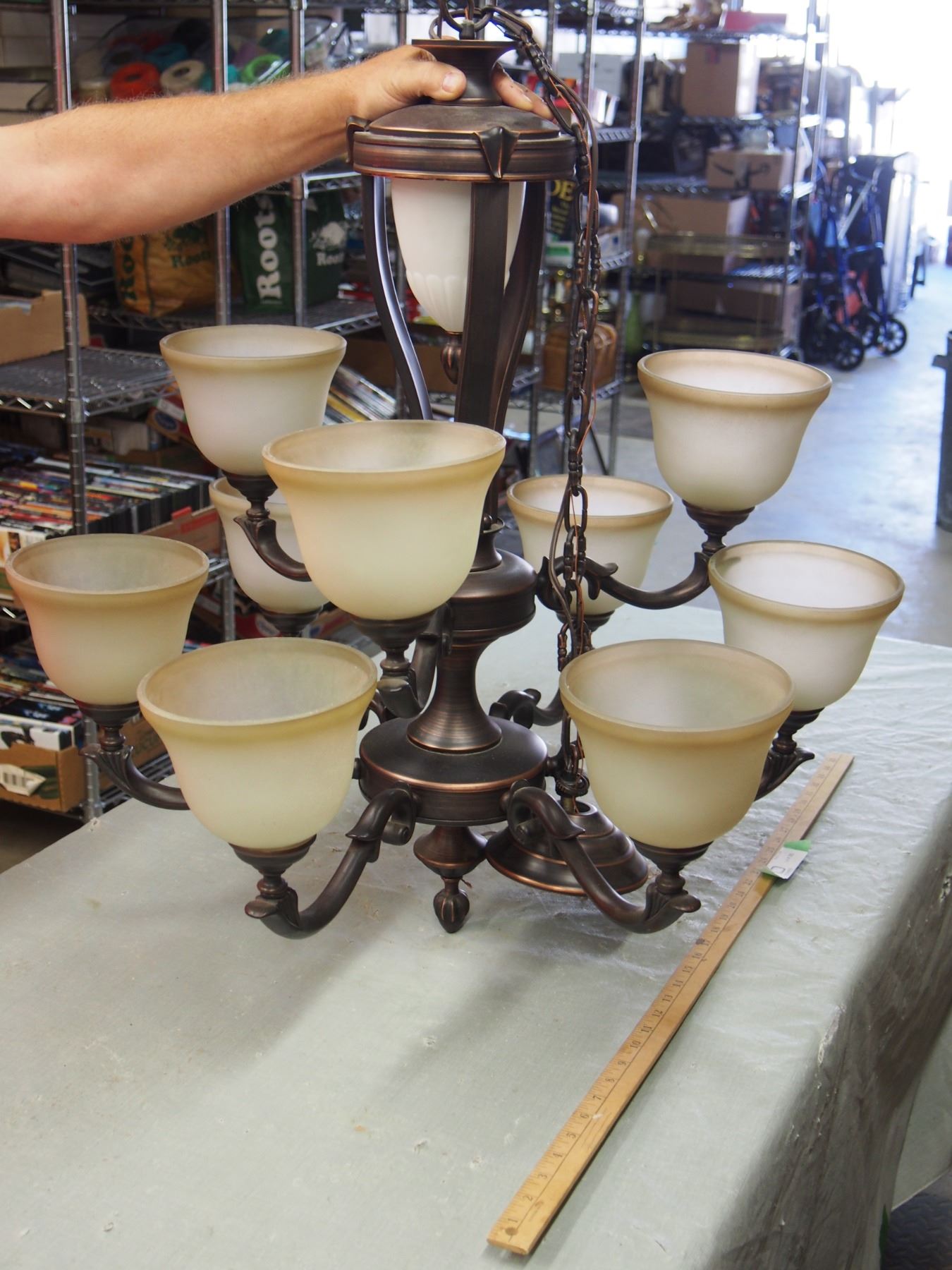 Chandelier with 9 Shades 29 by 25"
