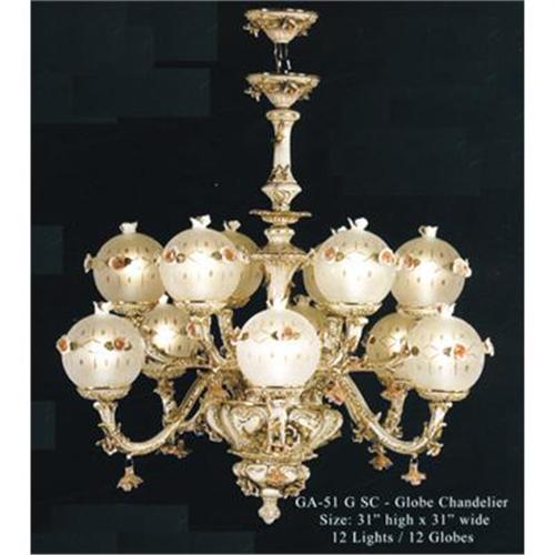 Capodimonte Chandelier with 12 Lights and 12 globes. Chandeliers are decorated with 24 karat gold paint. Flowers are hand made and hand painted. Size: 31" high x 31" wide Satisfaction Guaranteed All our capodimonte pieces are 100% authentic, made with the best craftmanship in Italy. Capodimonte is more than a century Italian style of the finest porcelain once reserved for kings and queens. The style became popular when the royal family in Italy fell in love with the beauty of Capodimonte arts. The selection you see is made by artisans, according to the same tradition dating back to the 18th Century.<BR>Free Shipping in the continental US