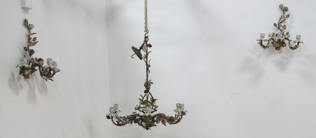 Chandelier approx. 26" H x 24" W. Sconces approx. 16" H x 14 1/2" W.