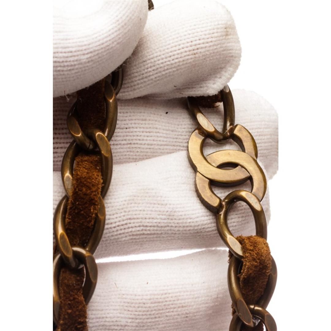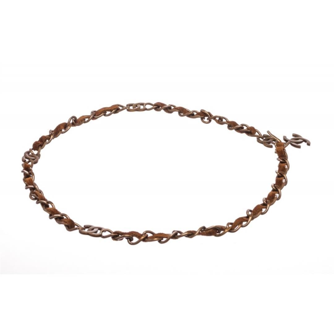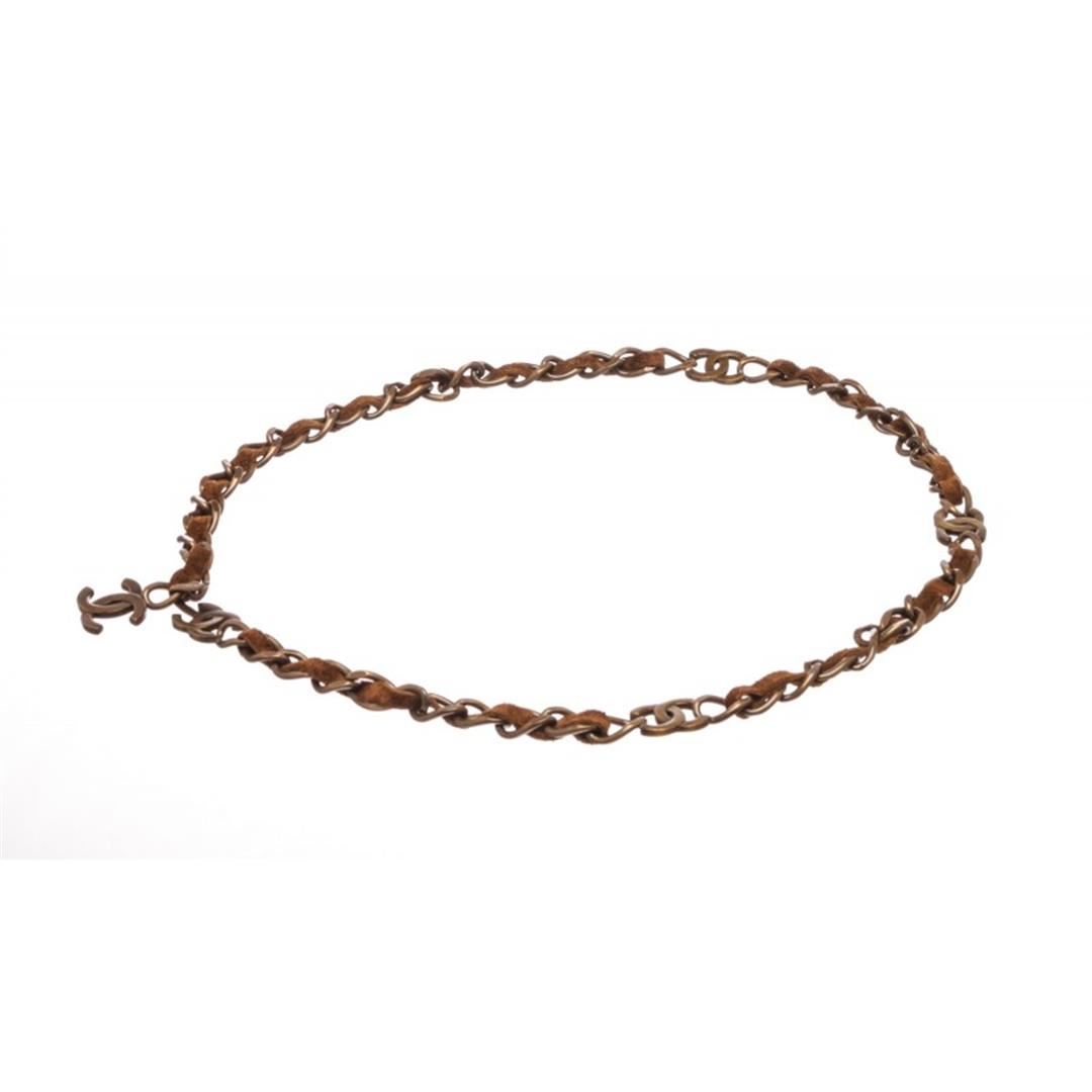 One Chanel Antique Brass Chain Link and Brown Suede CC Logo Belt. Adjustable belt.