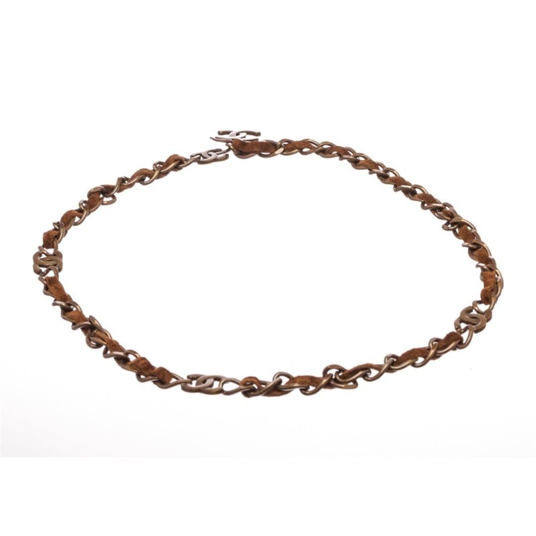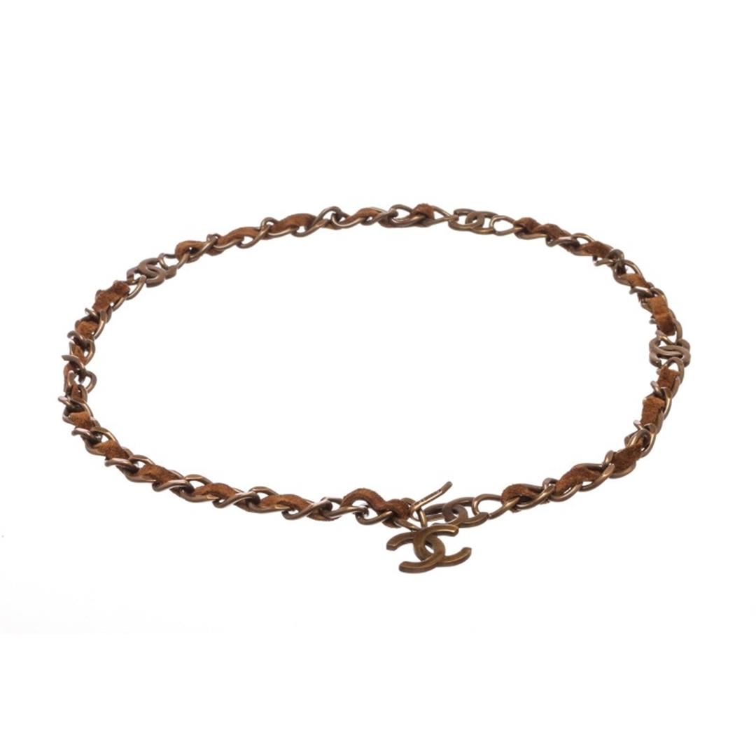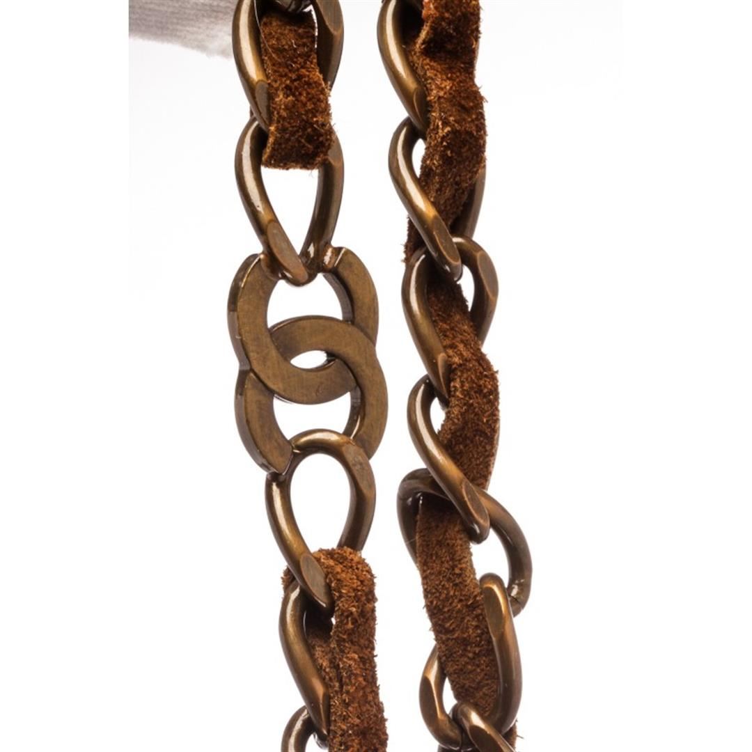 One Chanel Antique Brass Chain Link and Brown Suede CC Logo Belt. Adjustable belt.