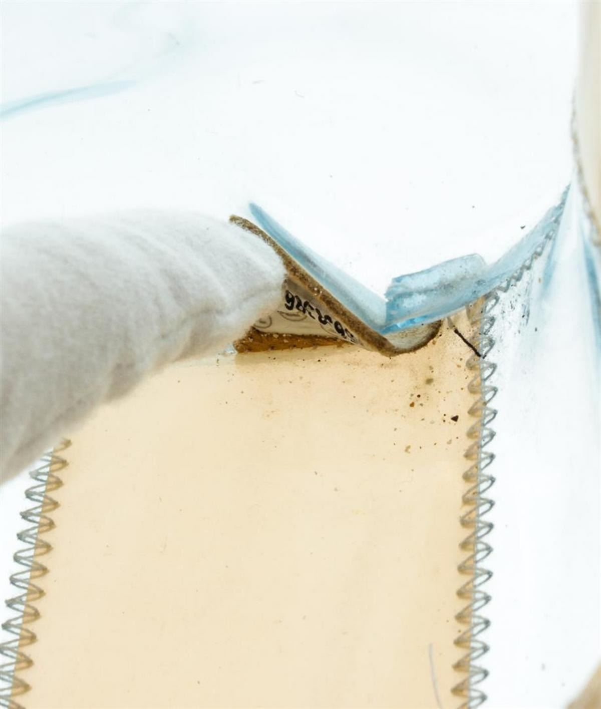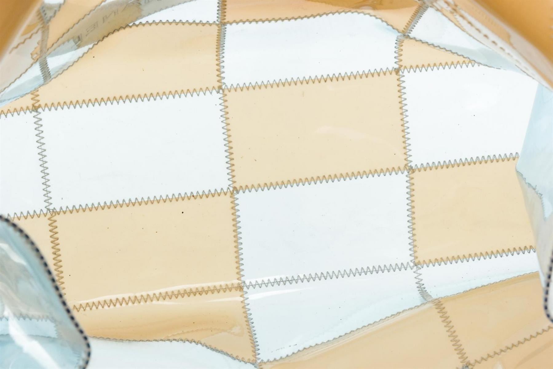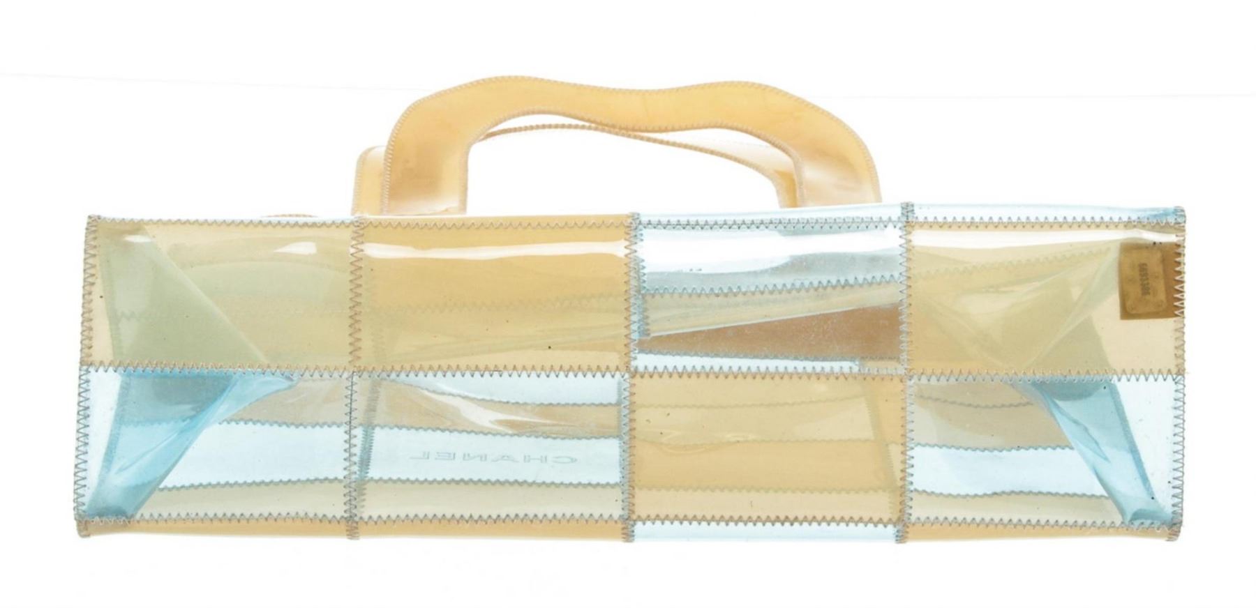 One Chanel Beige Blue Clear Vinyl Patchwork Shoulder Bag. Clear, beige and blue Chanel Vinyl Patchwork shoulder bag tote. CON