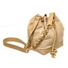 Chanel Beige Leather Drawstring Bucket Bag with gold-tone hardware, black leather lining, interior zip pocket, and drawstring closure.