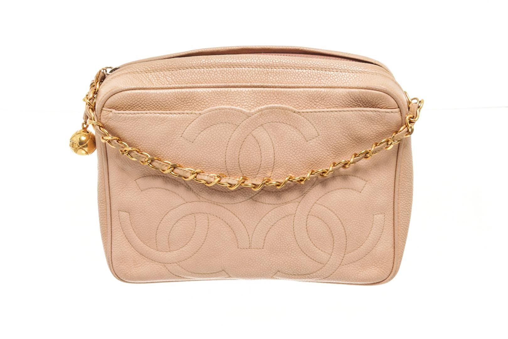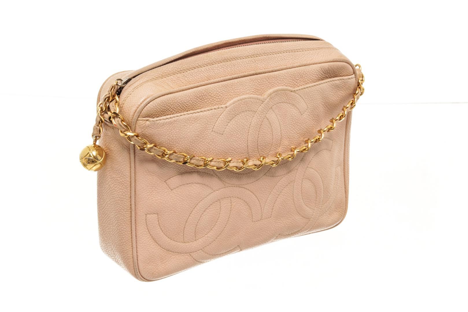 One Chanel Beige Leather Triple CC Camera Bag. Item is sold AS-IS. All available information is listed in the description and shown in the photo. chanel beige leather triple cc camera bag