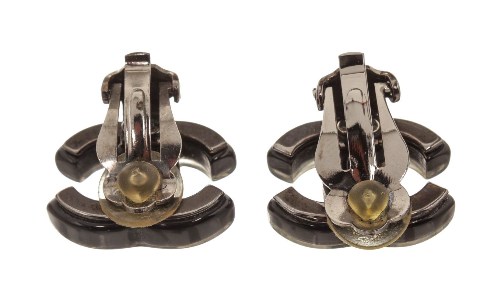 Chanel Black CC Earring with gold-tone hardware.