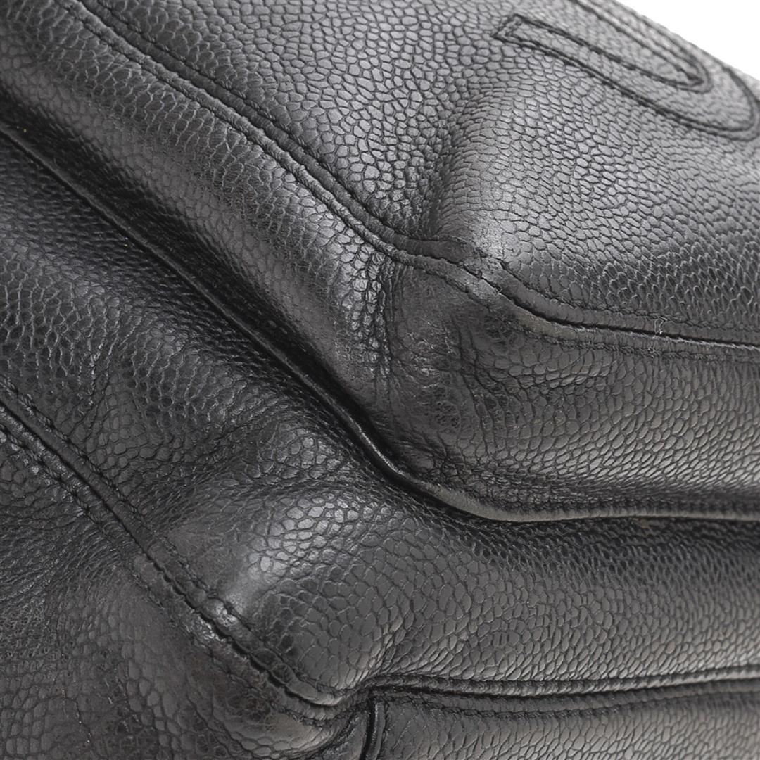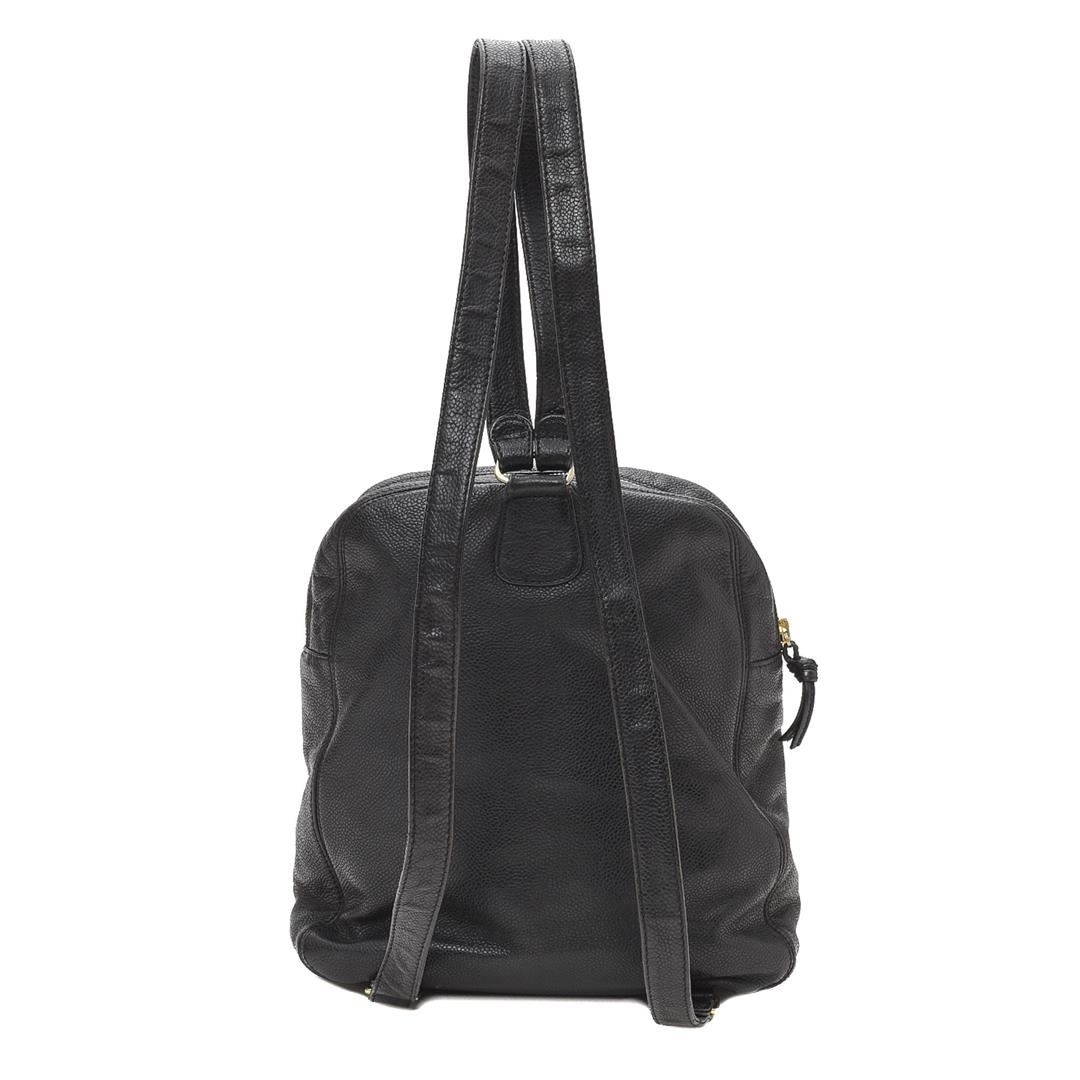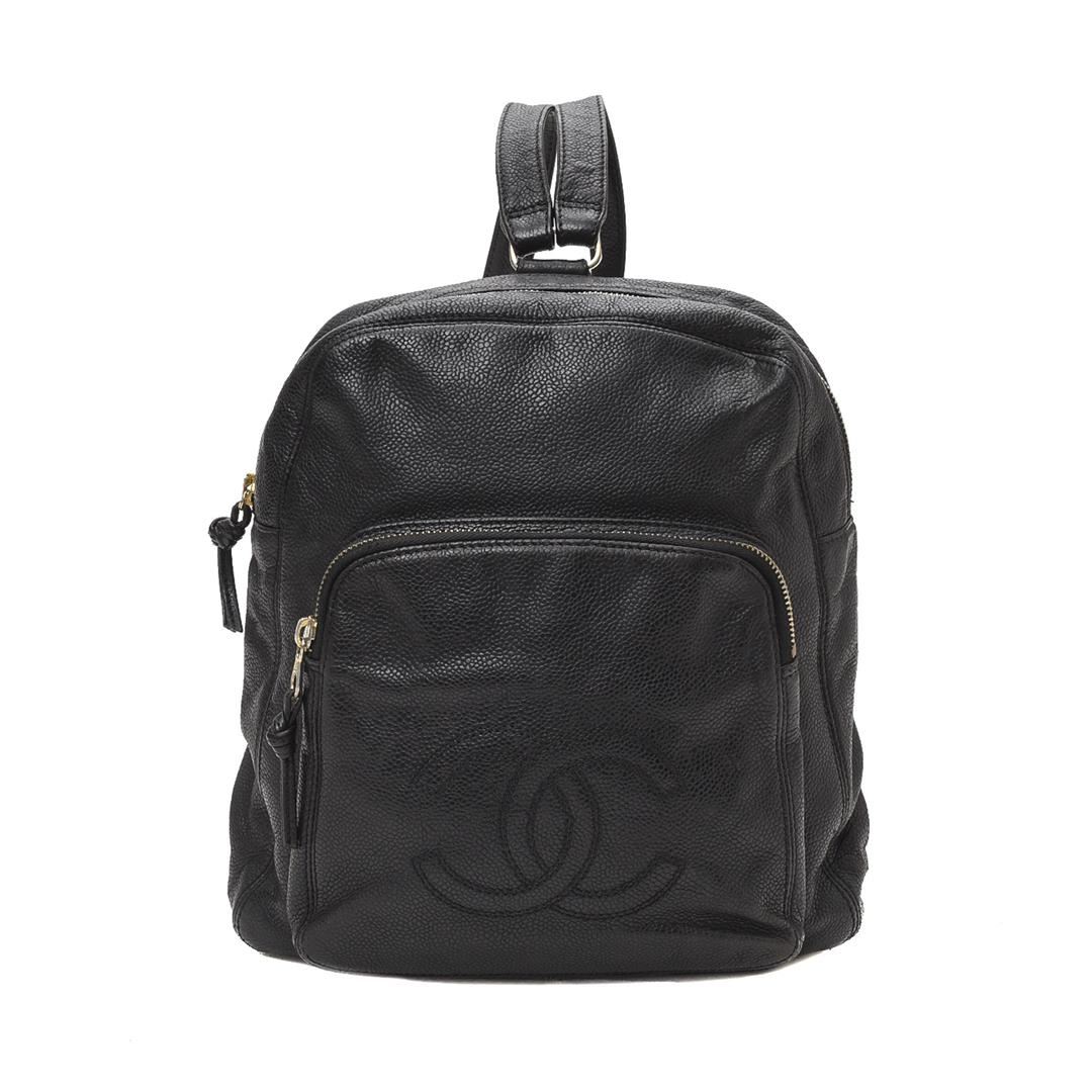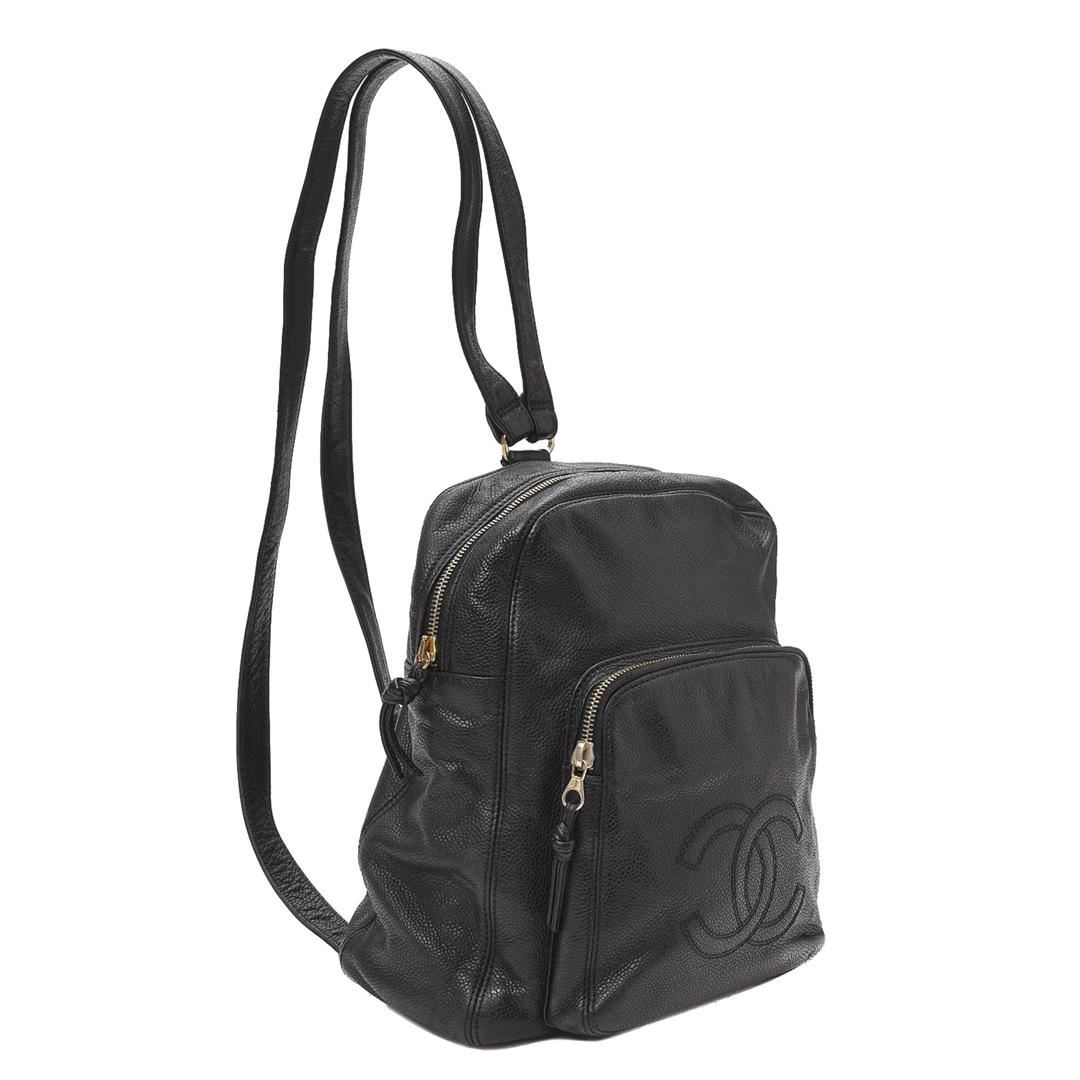 Chanel Black Calfskin Leather CC Caviar Backpack. Please see photos and description for all available information! Black Calfskin leather Chanel CC Caviar backpack with gold-tone hardware, dual shoulder strap, front zip pocket with an interlocking CC stit