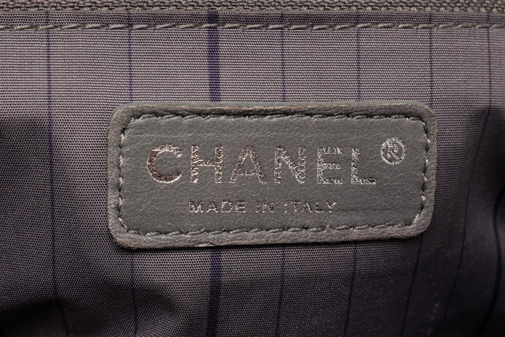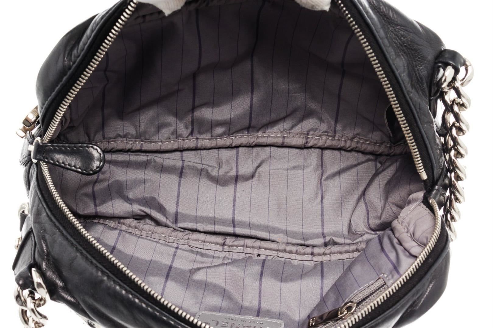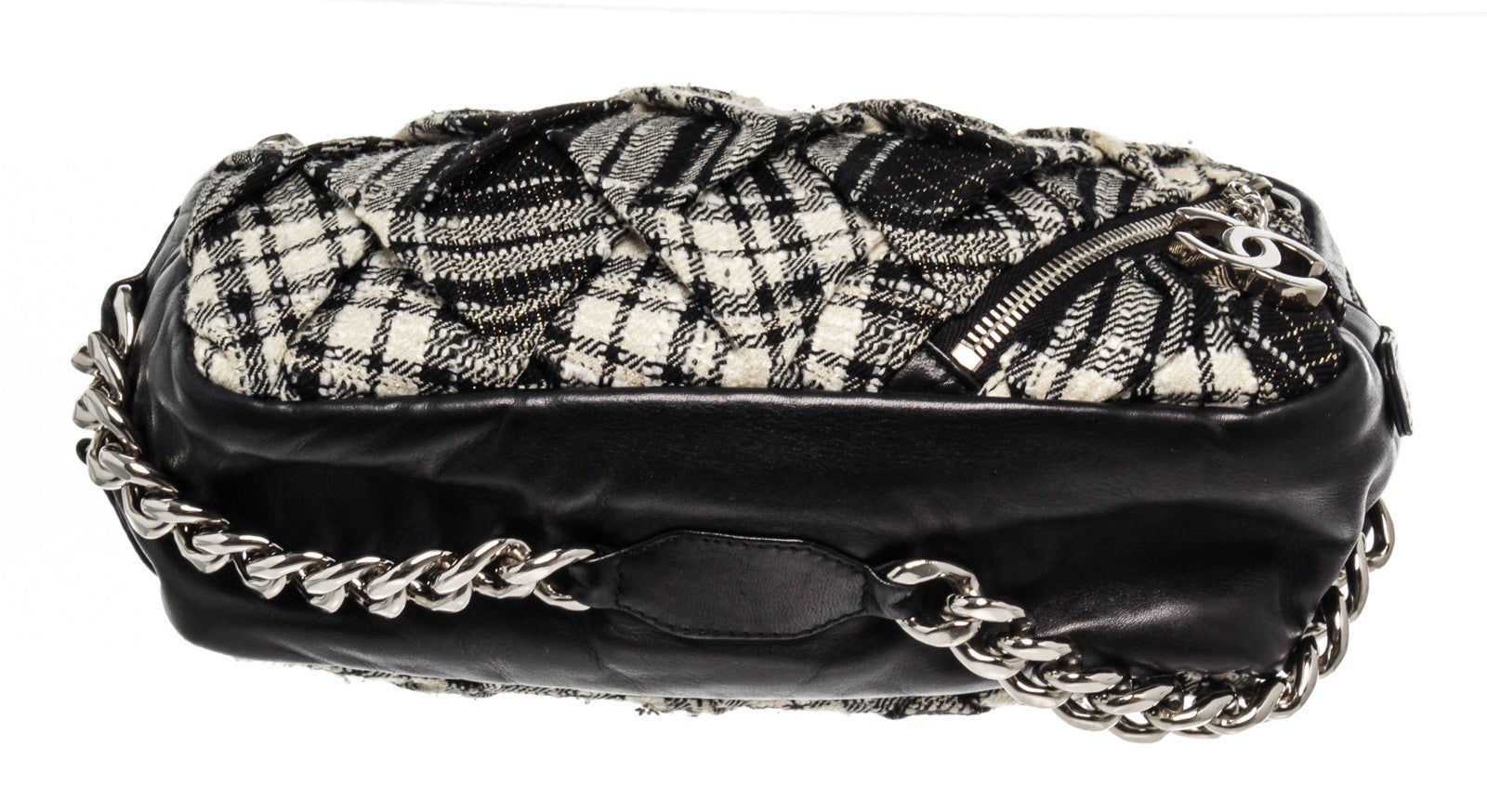 Chanel Black Canvas Leather Twisted Tweed Shoulder Bag with canvas leather, silver-tone hardware, interior slip pocket, chain shoulder strap and flap closure.