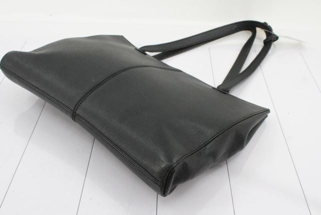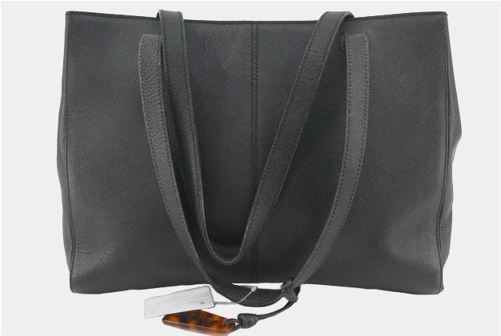 This Chanel XL tote bag is crafted in black Caviar leather, two flat shoulder straps, vertical stitching on both sides of exterior. Tortoise shell stamped tag with Chanel name brand hangs from shoulder strap. Hidden magnetic closure. Interior is black gro