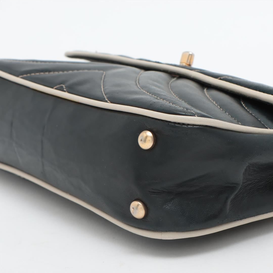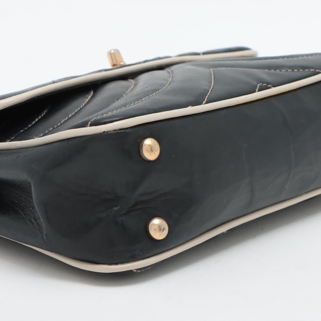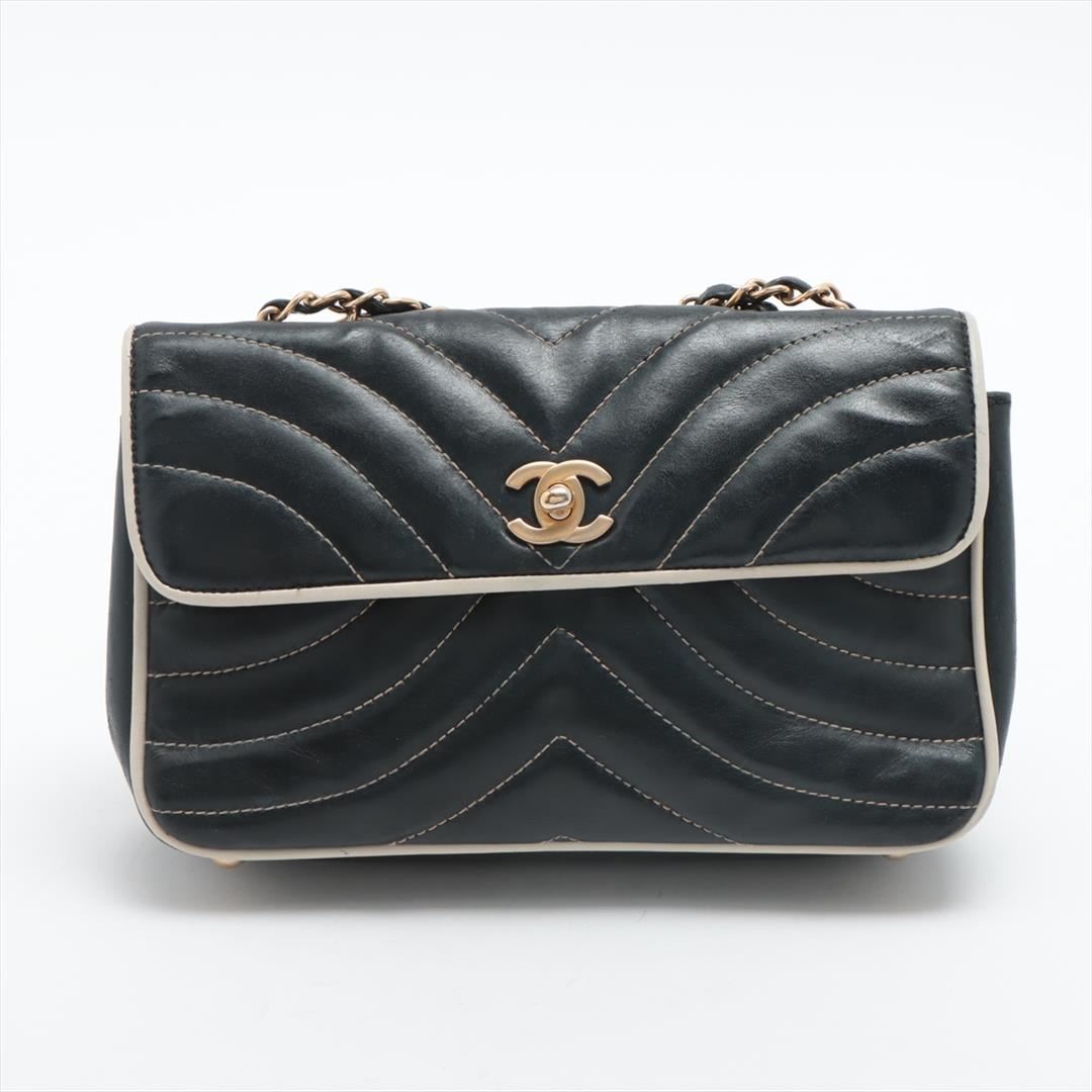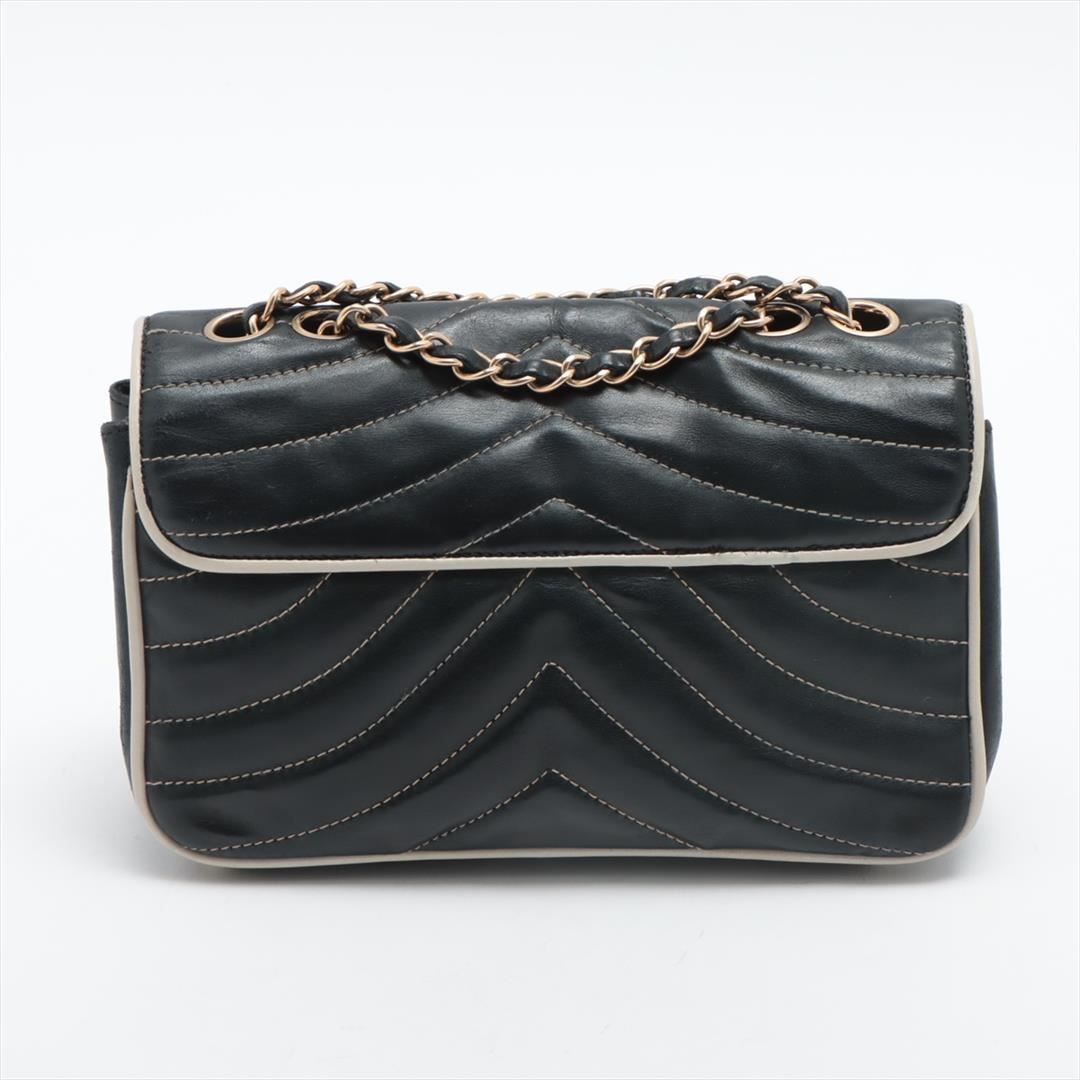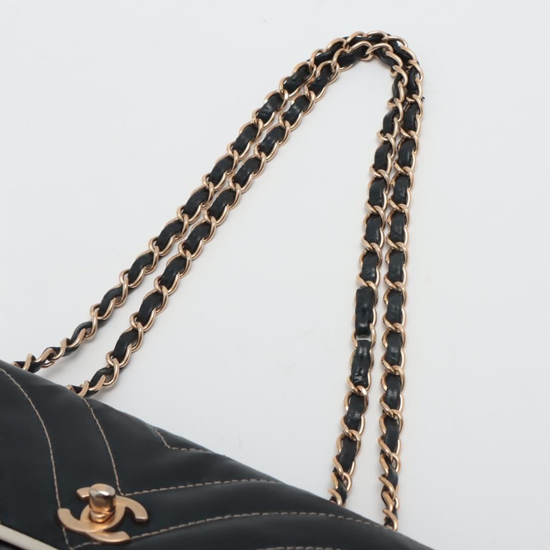 Black Chevron quilted Lambskin leather Chanel CC Single Flap shoulder bag with gold-tone hardware, beige leather trim, woven leather and chain-link handle, the signature CC turn lock on the front, protective feet at base and a black nylon lined interior w