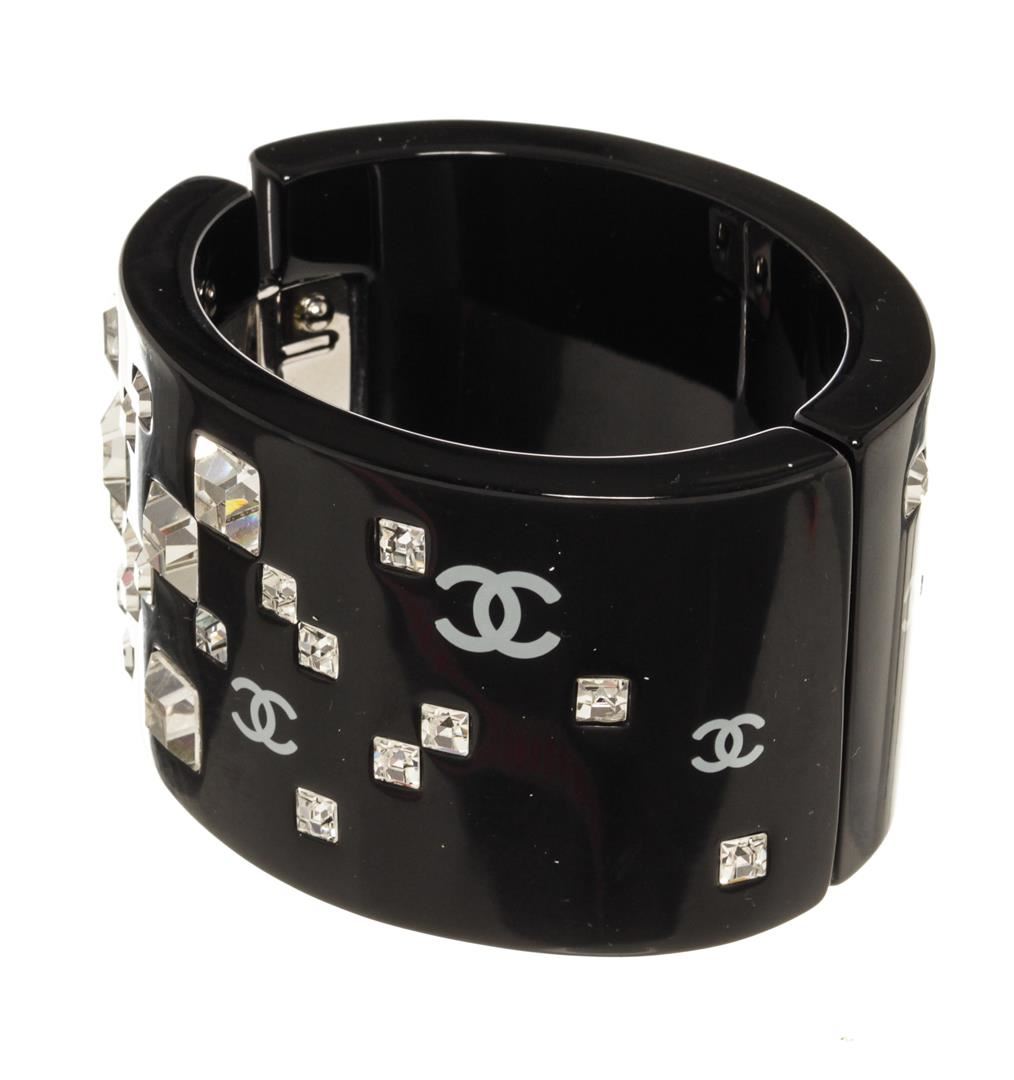 Chanel Black Crystallized Bangle. All available information is listed in the description and shown in the photos. Chanel Black Crystallized Bangle made in France