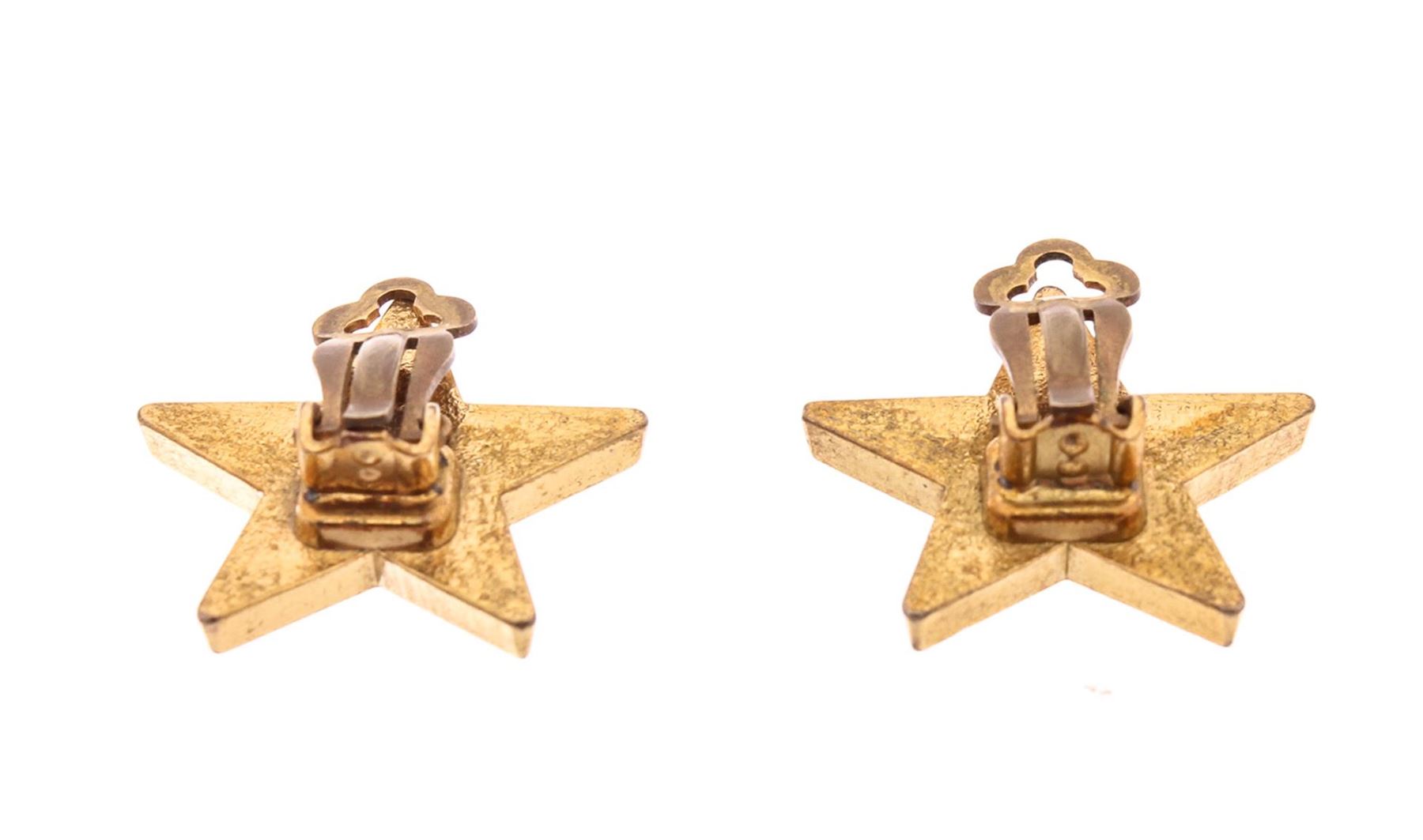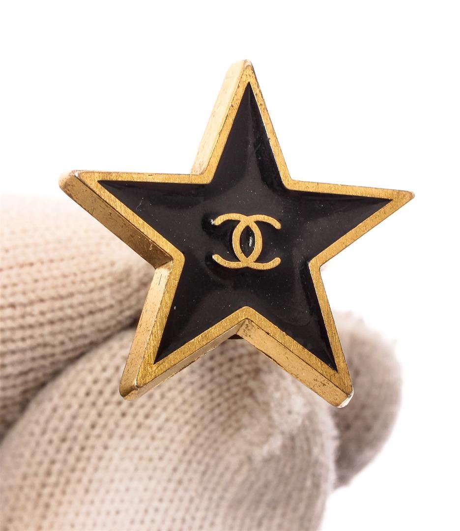 Black enamel and gold-tone Chanel star-shaped clip on earrings with CC logo at center.