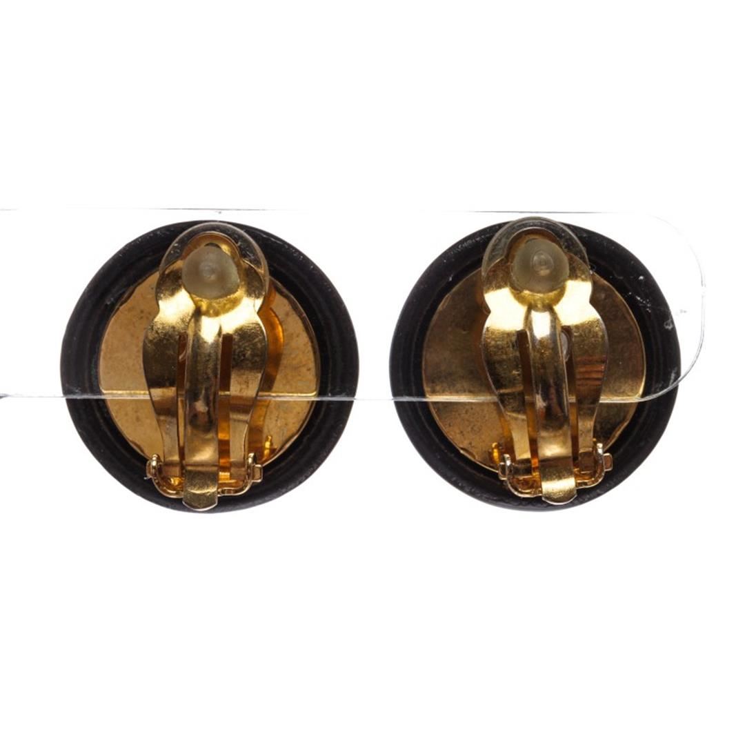 One pair of Chanel Black Glass Logo Disc Clip On Earrings 97P. From Chanel 1997 Spring Collection. Clip On Backing. Box Included.