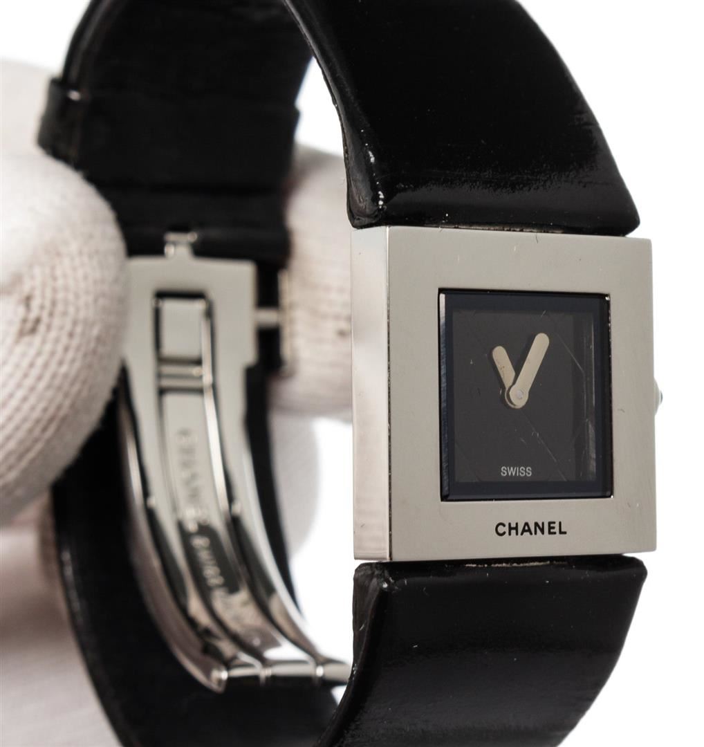 Chanel Black Leather Dial Quartz Ladies Watch. Please see photos and description for all available information! Chanel Black Leather Dial Quartz Ladies Watch with leather, silver-tone hardware.