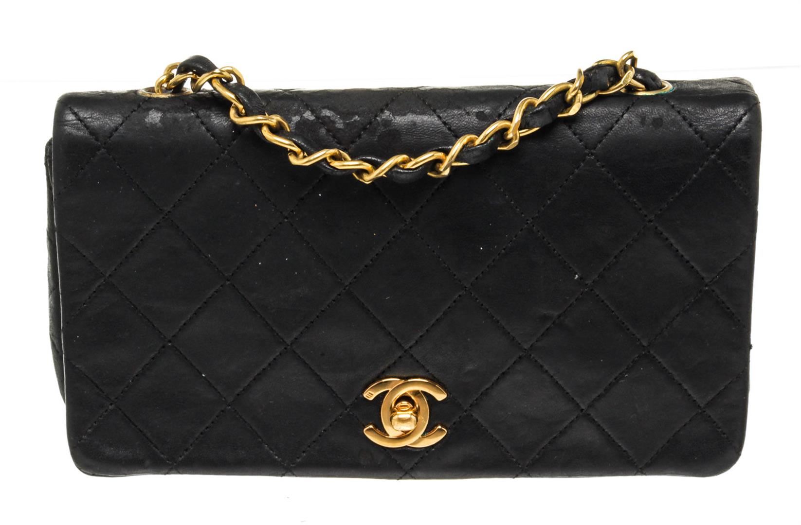 One Chanel Black Leather Mini Full Flap Shoulder Bag. Item is sold AS-IS. All available information is listed in the description and shown in the photo. Chanel Black Leather Medium Full Flap Shoulder Bag with leather, gold-tone hardware, interior slip pocket, chain shoulder strap and snap closure. PLEASE NOTE: bay has been redyed, base of bag is creased.