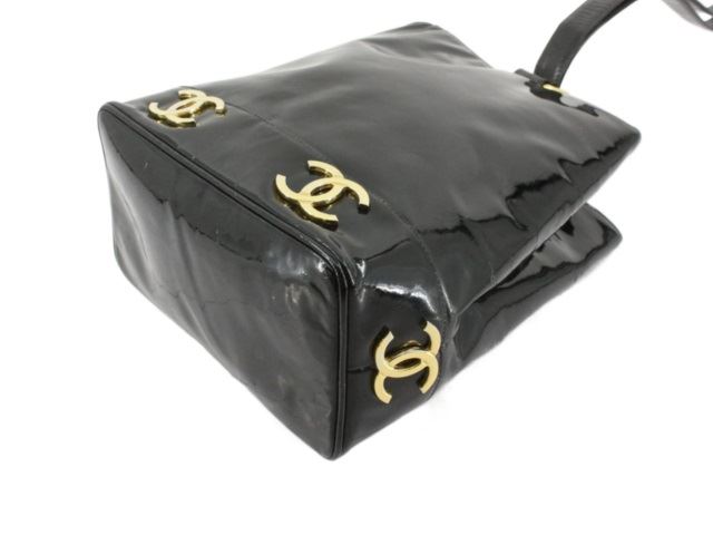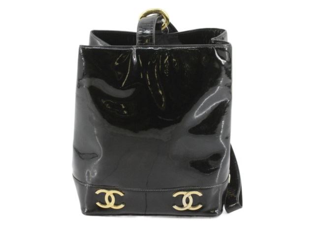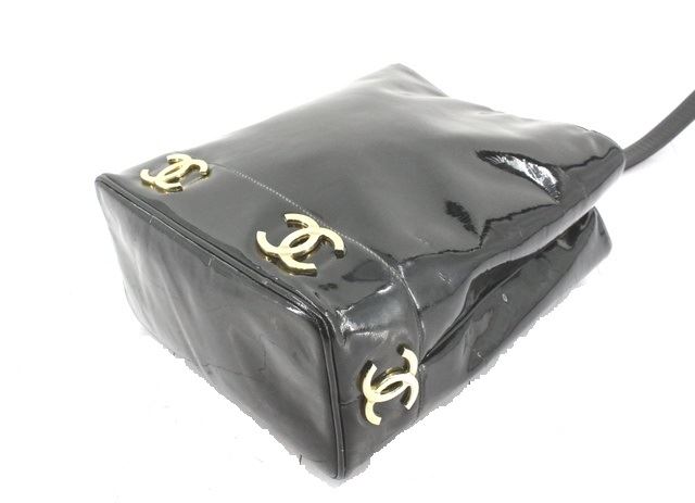 One Chanel Black Patent Leather CC Shoulder Bucket Bag. Item is sold AS-IS. All available information is listed in the description and shown in the photo. Black Patent Leather
