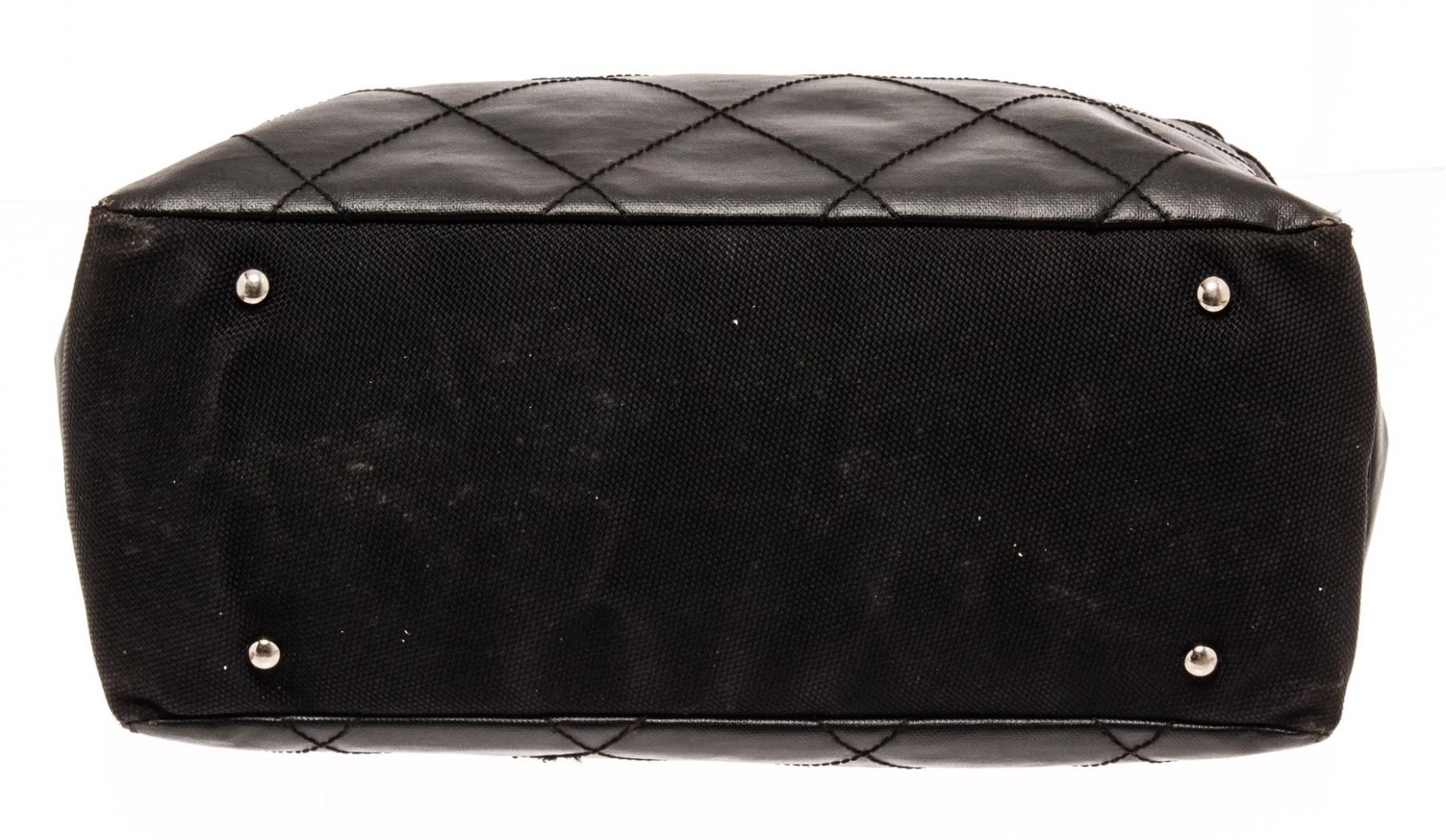 Chanel Black Quilted Coated Canvas Paris Biarritz Shoulder Bag. All available information is listed in the description and shown in the photos. Chanel Black Quilted Coated Canvas Paris Biarritz Shoulder Bag with top handles, nylon lining, interior pockets, silver hardware, zipper closure. Height: 11.42 in (29 cm), Width: 5.52 in (14 cm), Length: 13.78 in (35 cm)