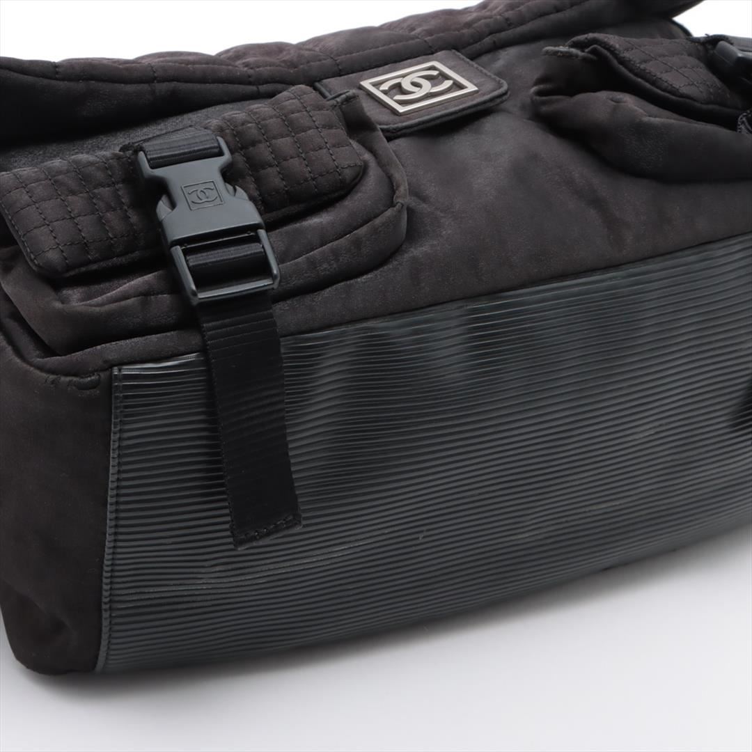 One Chanel Black Quilted Nylon Sport Line Double Pocket Medium Messenger Bag. Item is sold AS-IS. All available information is listed in the description and shown in the photo. Black quilted nylon Chanel Sport Line Double Pocket medium messenger bag with an adjustable nylon shoulder strap, dual exterior front pockets with buckles and silver-tone hardware. Its magnetic snap and zip closure opens to a black nylon interior with zip pocket.