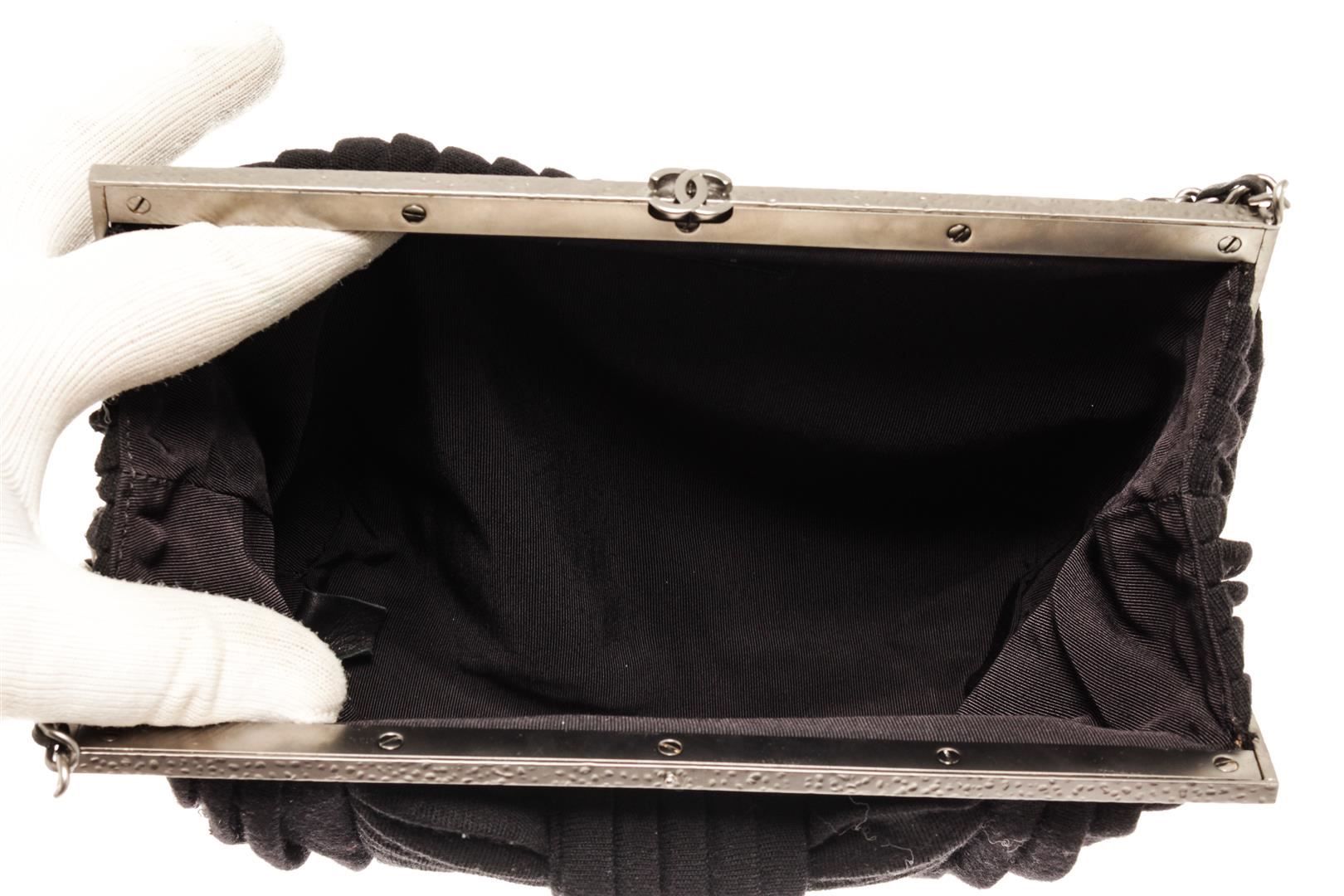 Chanel Black Suede Bow Motiff CC Shoulder Bag. All available information is listed in the description and shown in the photos. Chanel Black Suede Bow Motiff CC Shoulder Bag with black and silver chain, silver hardware, snap closure.