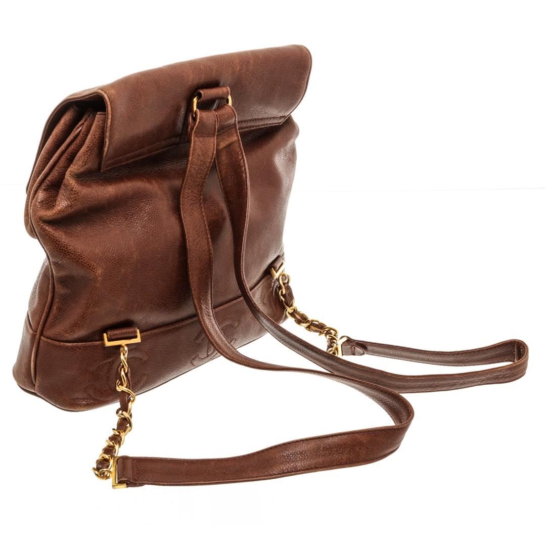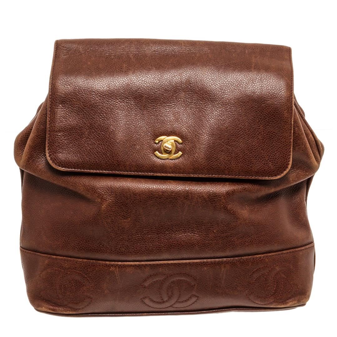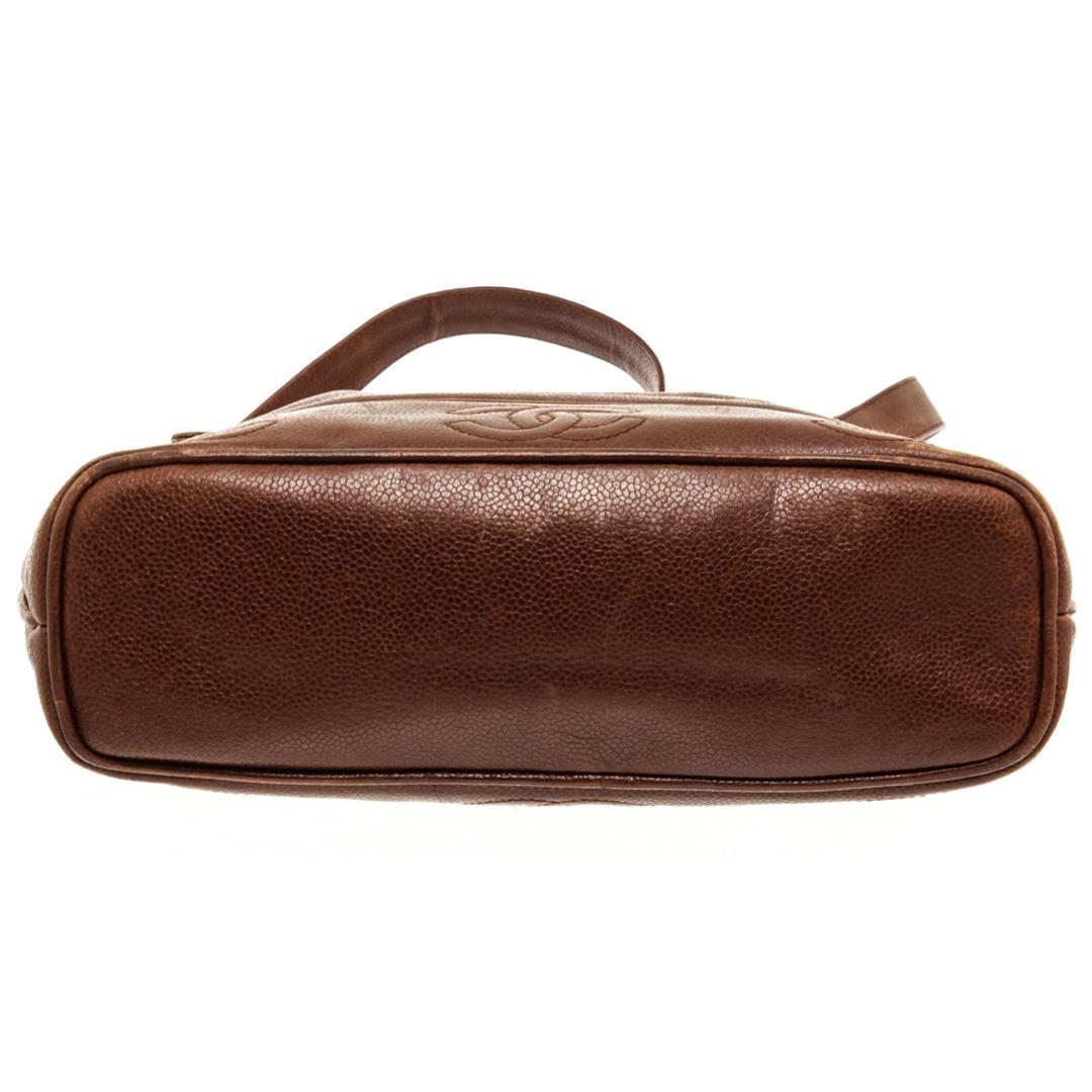 Crafted out of brown caviar leather, gold-tone hardware, and CC turn lock closure at flap. 13104MSC MKX Authentic.