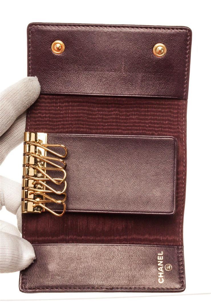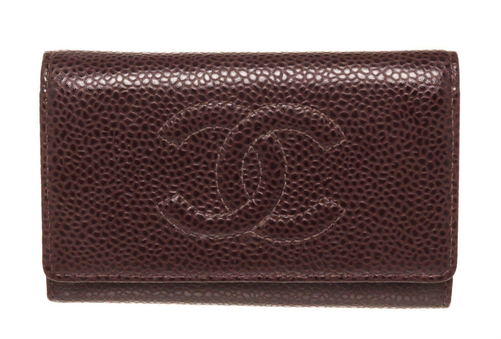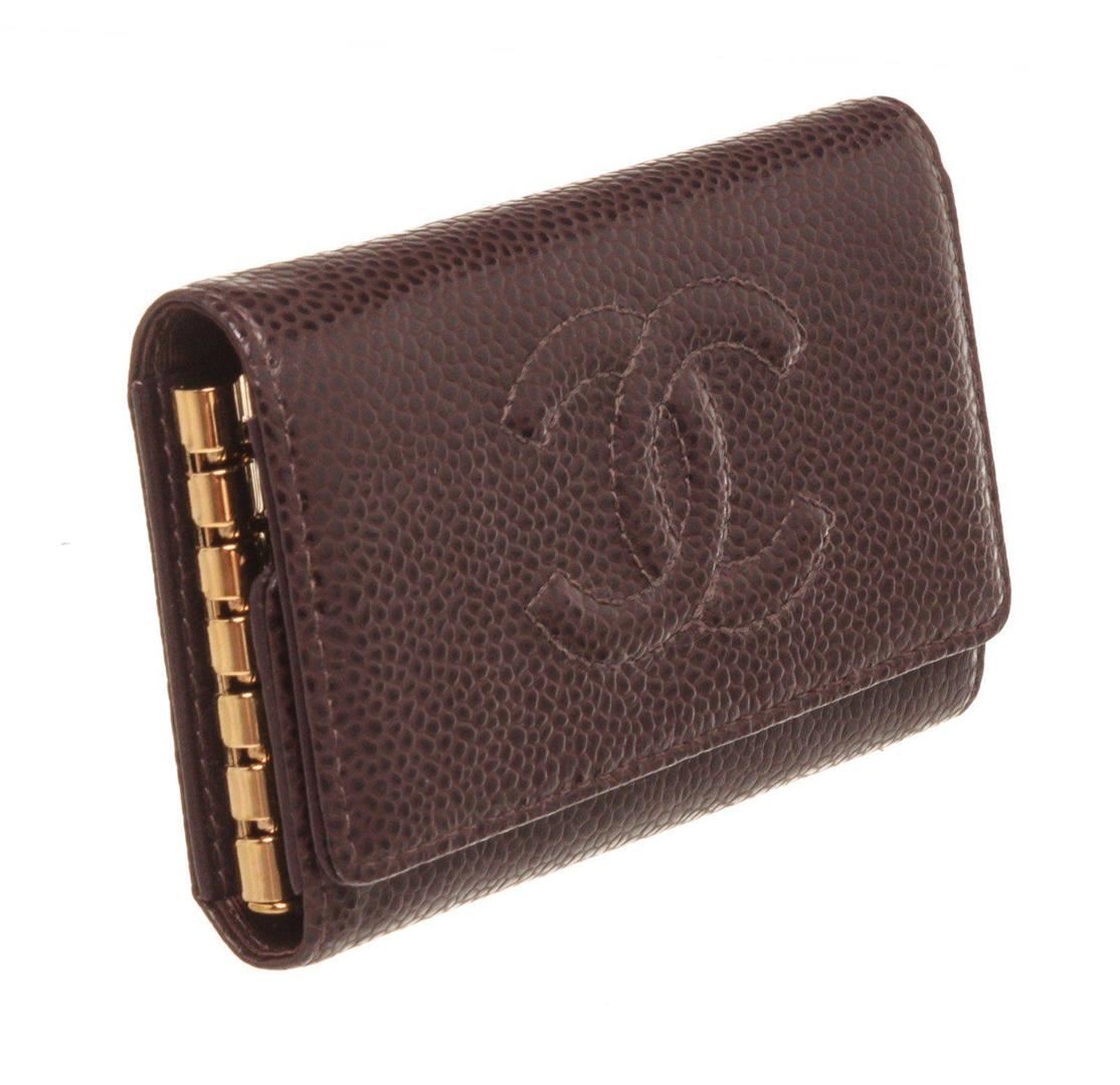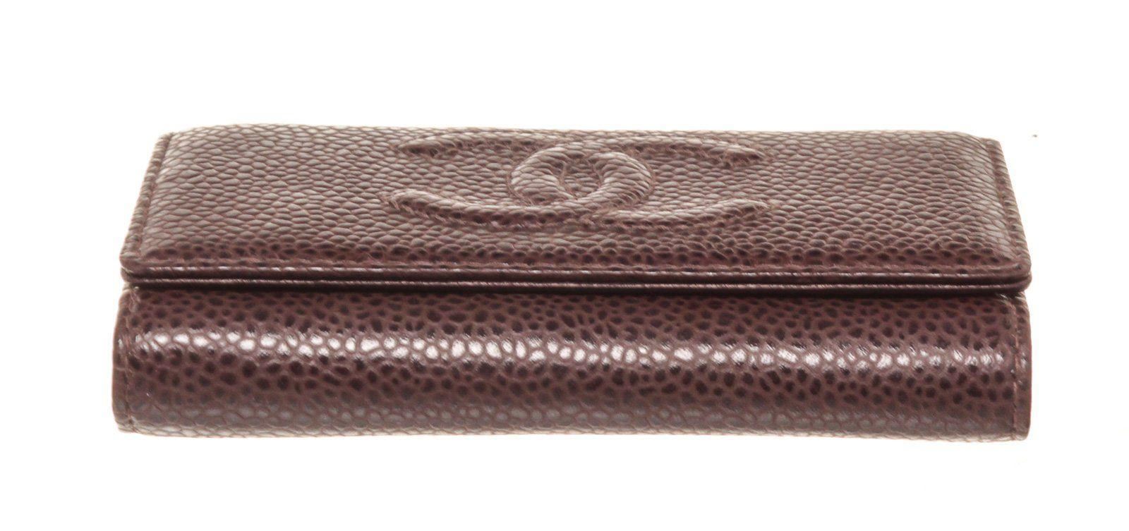 Chanel Brown Caviar Leather Key Holder Wallet with leather, gold-tone hardware, trim leather, interior key holder pockets and snap closure.