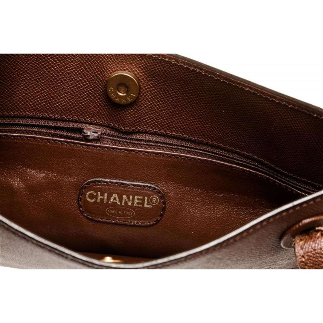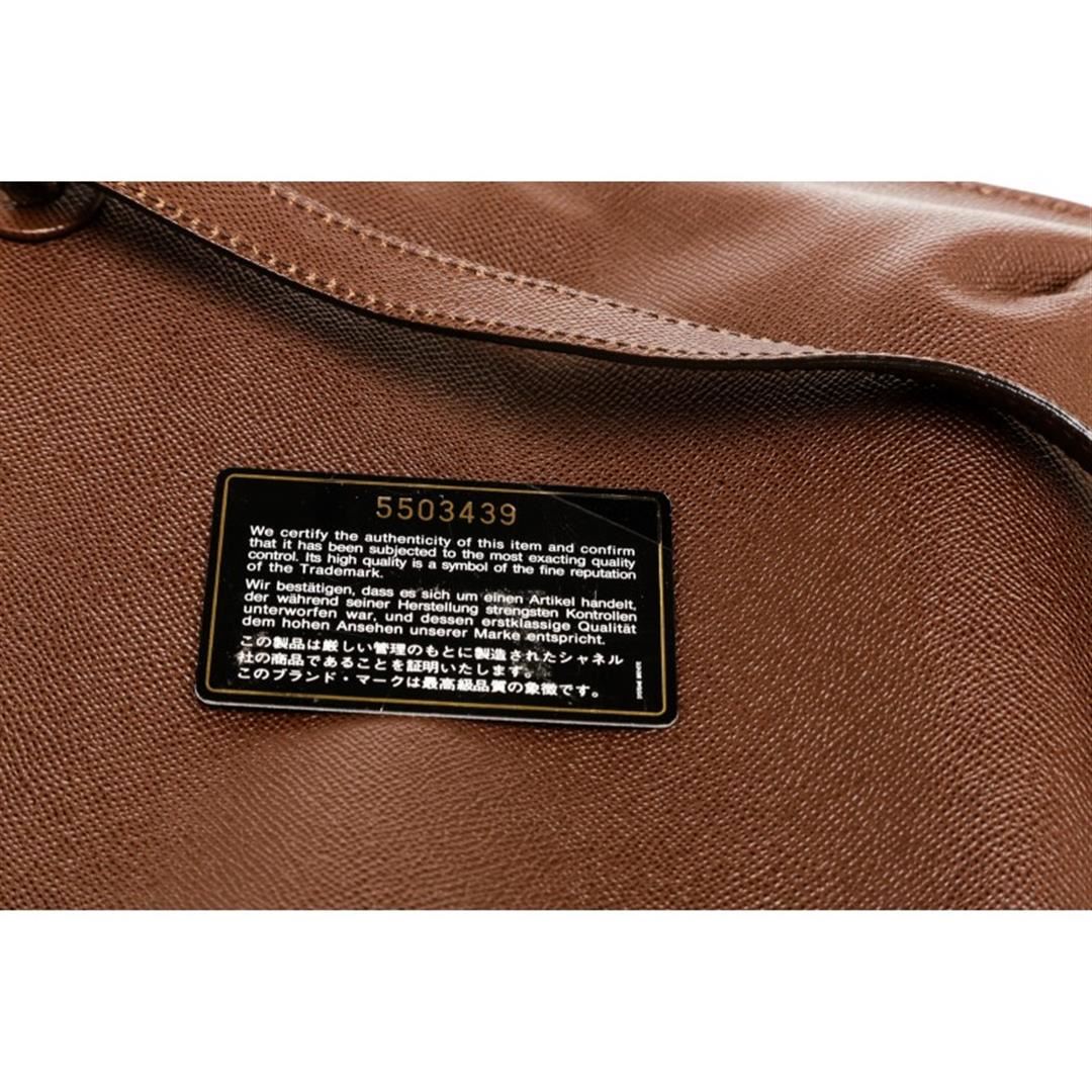 Overall magnetic button closure. Interior is leather lined and contains two side zipper pockets. Comes with serial number authenticity card. Item is pre-owned.