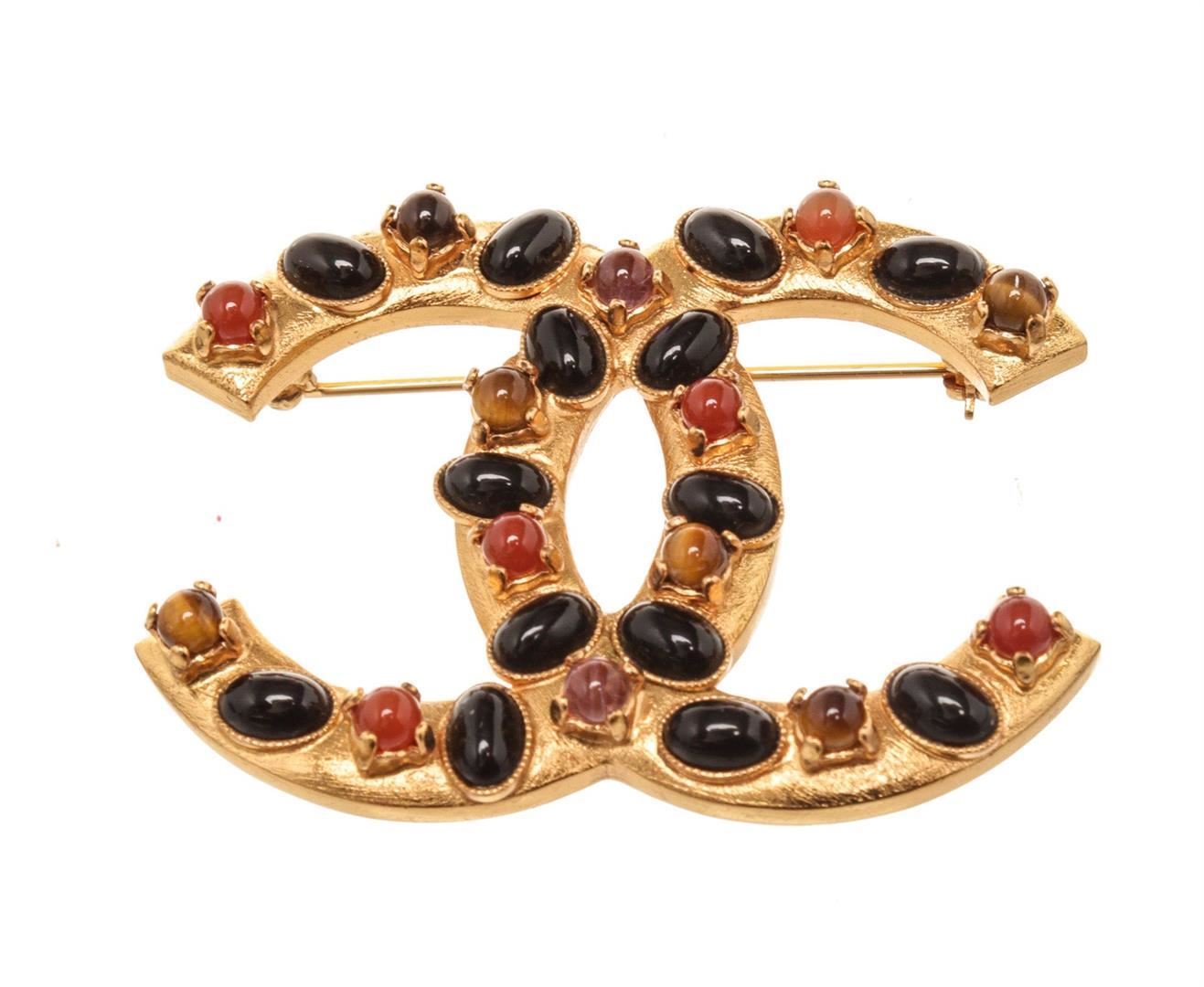 Gold-tone Chanel CC brooch with multi colors gripoix
