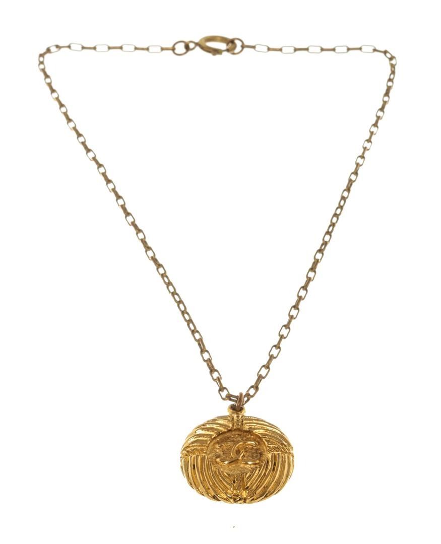 Chanel CC Gold Coco Mark Necklace. All available information is listed in the description and shown in the photos. Chanel CC Gold Coco Mark Necklace with gold tone metal hardware and pendant. Made in France and 17.4 inches length.