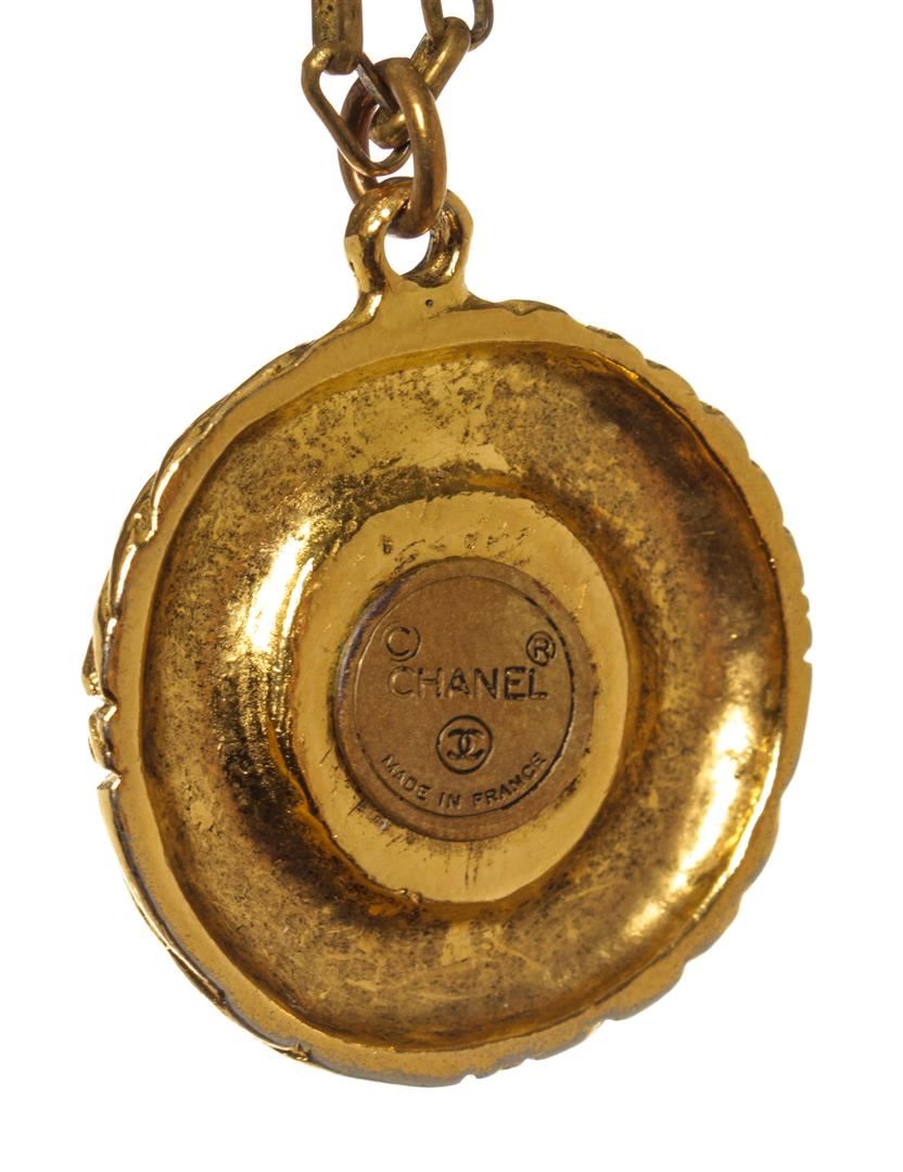 Chanel CC Gold Coco Mark Necklace. All available information is listed in the description and shown in the photos. Chanel CC Gold Coco Mark Necklace with gold tone metal hardware and pendant. Made in France and 17.4 inches length.