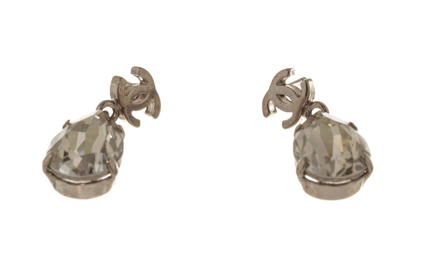 Chanel CC Silver Rhinestone Earrings. All available information is listed in the description and shown in the photos. Chanel CC Silver Rhinestone Earrings with silver tone metal hardware.