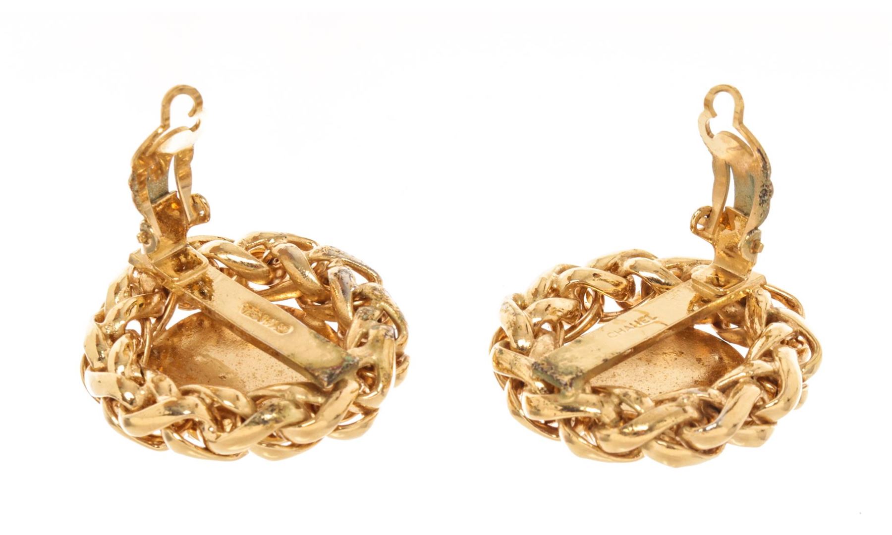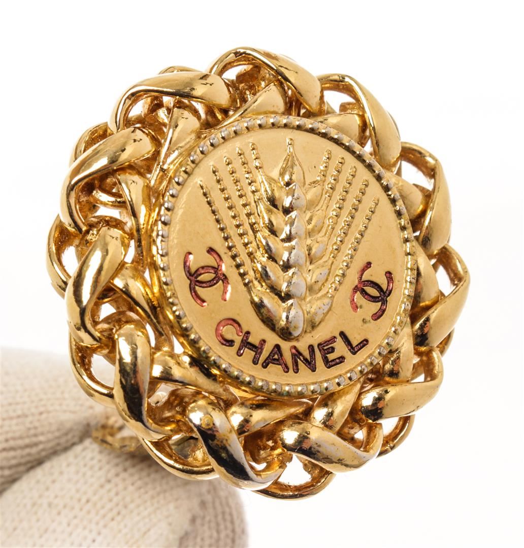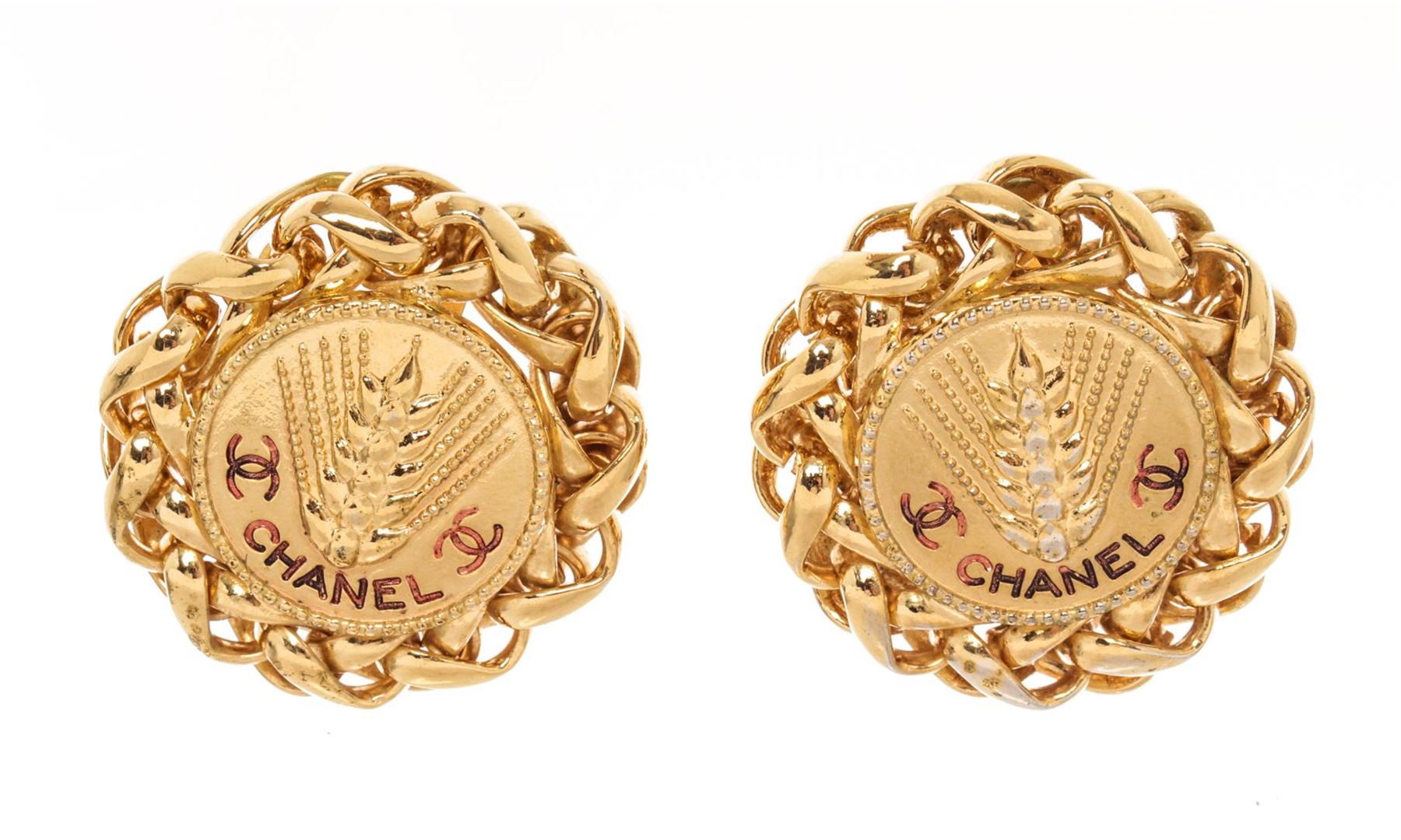 Chanel CC Wheat Earrings. Brand: Chanel, Style: CC Wheat, Type: Earrings, Exterior color: Gold, Exterior material: Metal, Length: 1, Width: 1, Height: 1. Item is sold AS-IS and all information pertaining to this lot is available in the photos or this desc