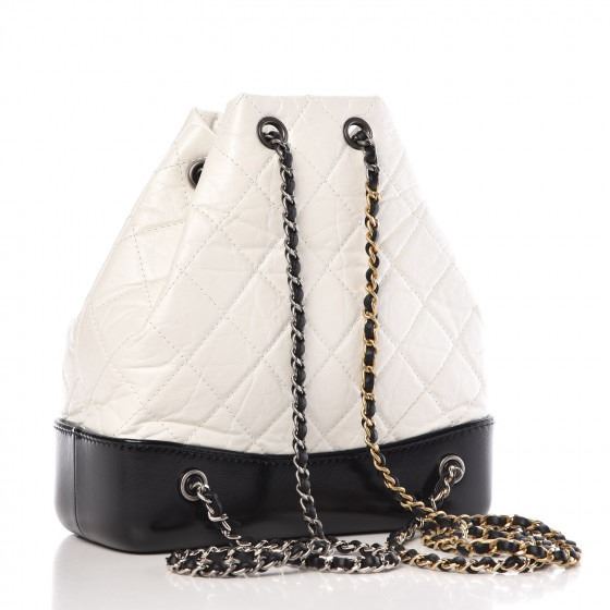Chanel Aged Calfskin Quilted Small Gabrielle Backpack Black White