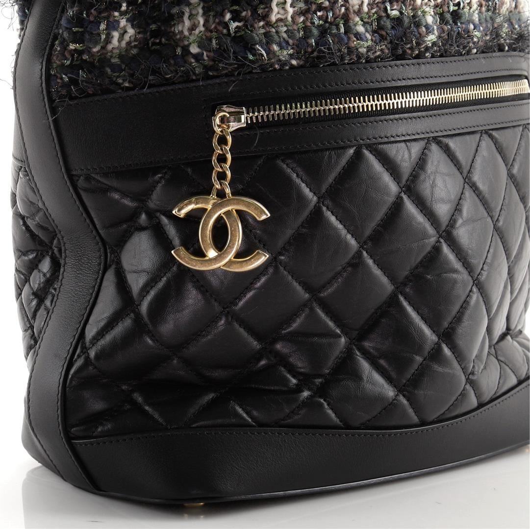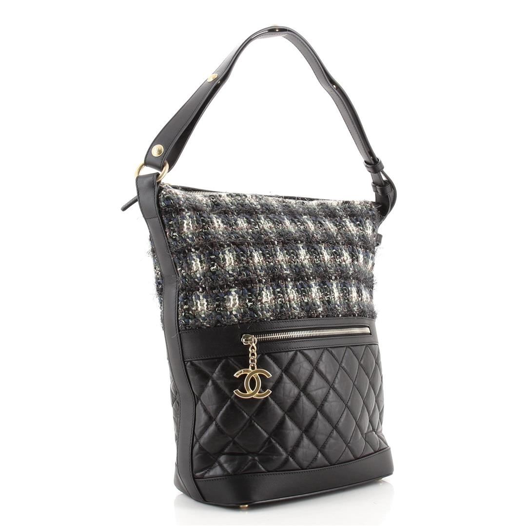Chanel Casual Style Hobo Tweed and Quilted Aged Calfskin Large Black, Multicolor