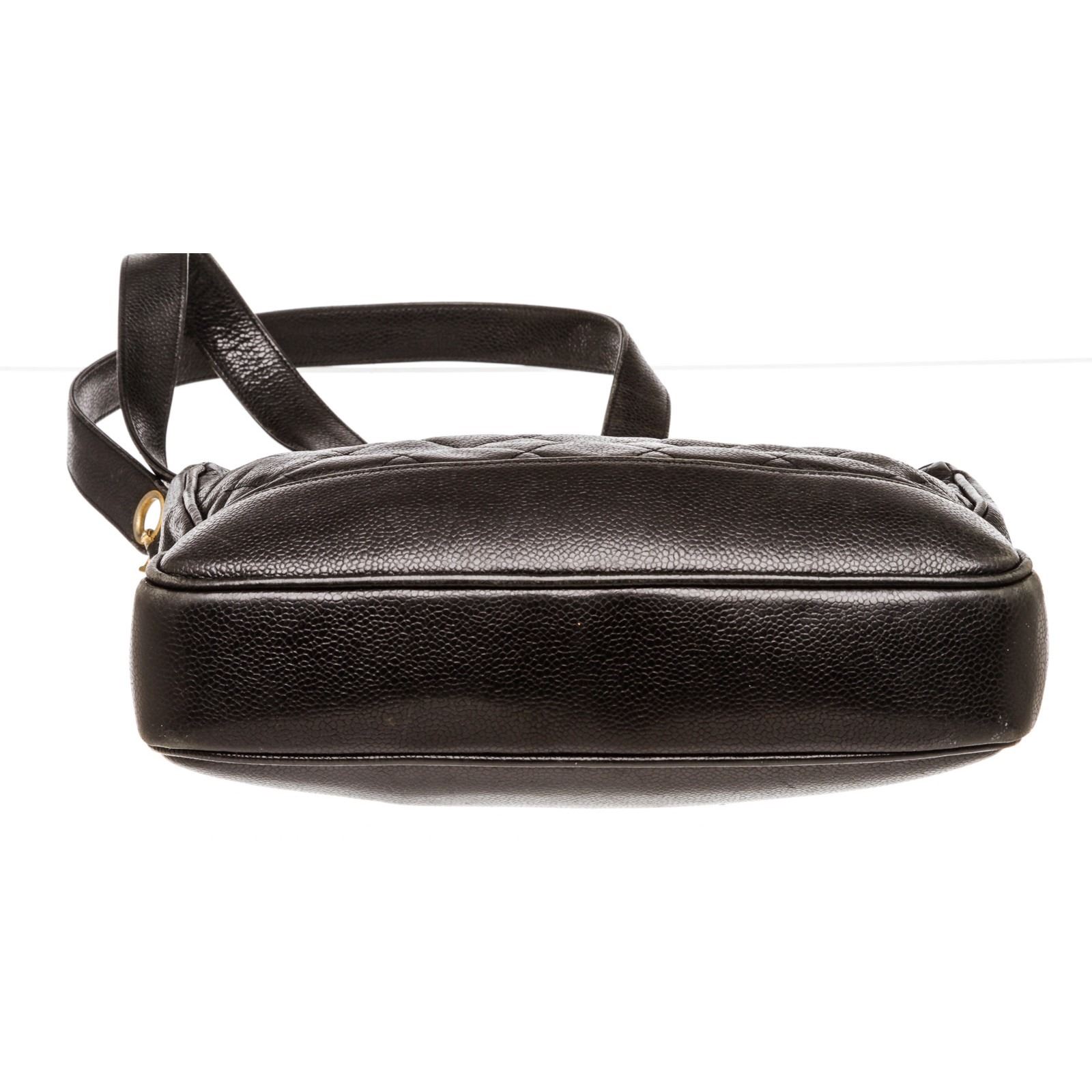 Chanel black Caviar leather shoulder tote bag with gold-tone hardware, black leather lining, dual black interior zip pockets, dual exterior slip pockets, and dual magnetic snap closures.