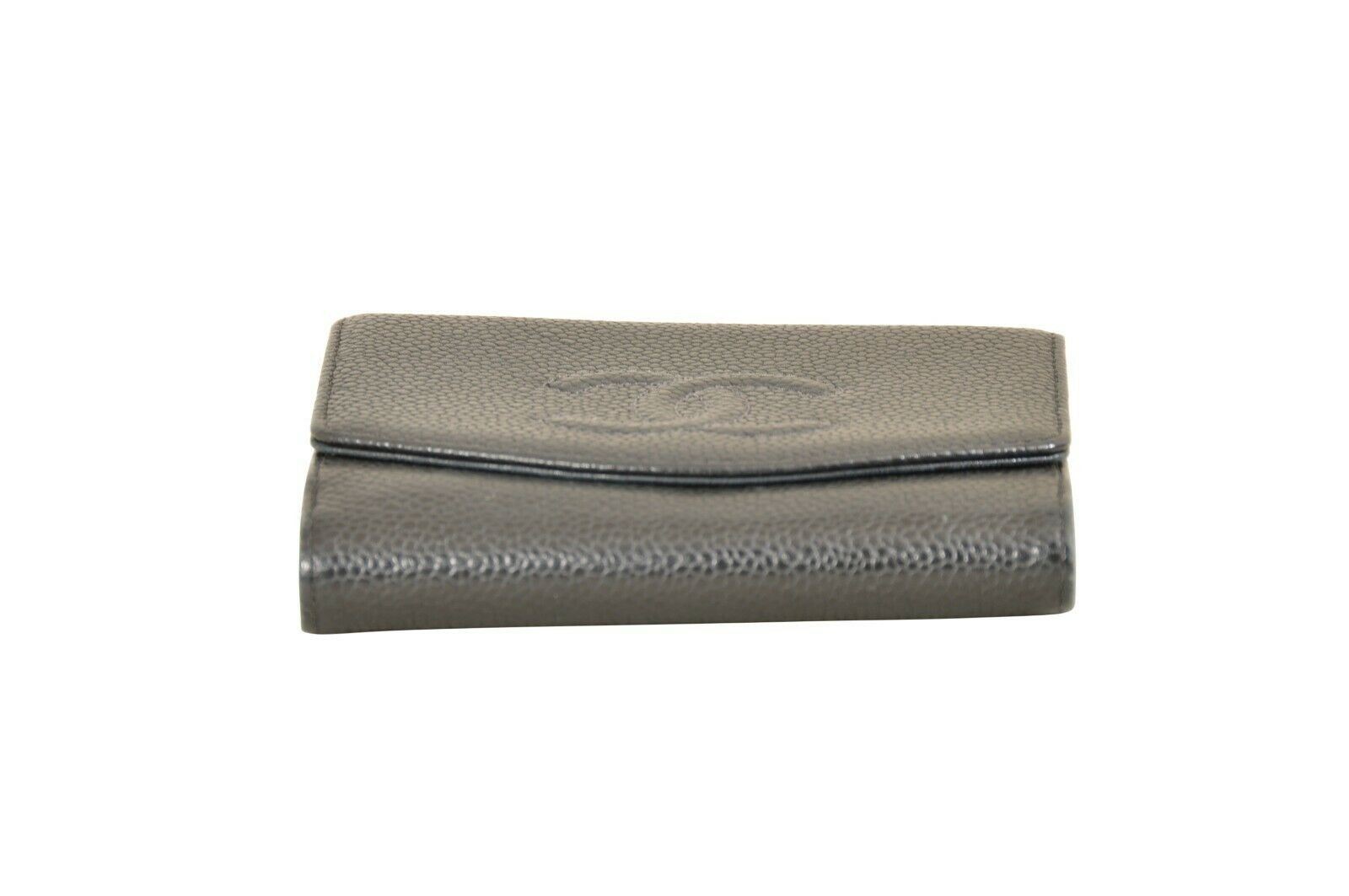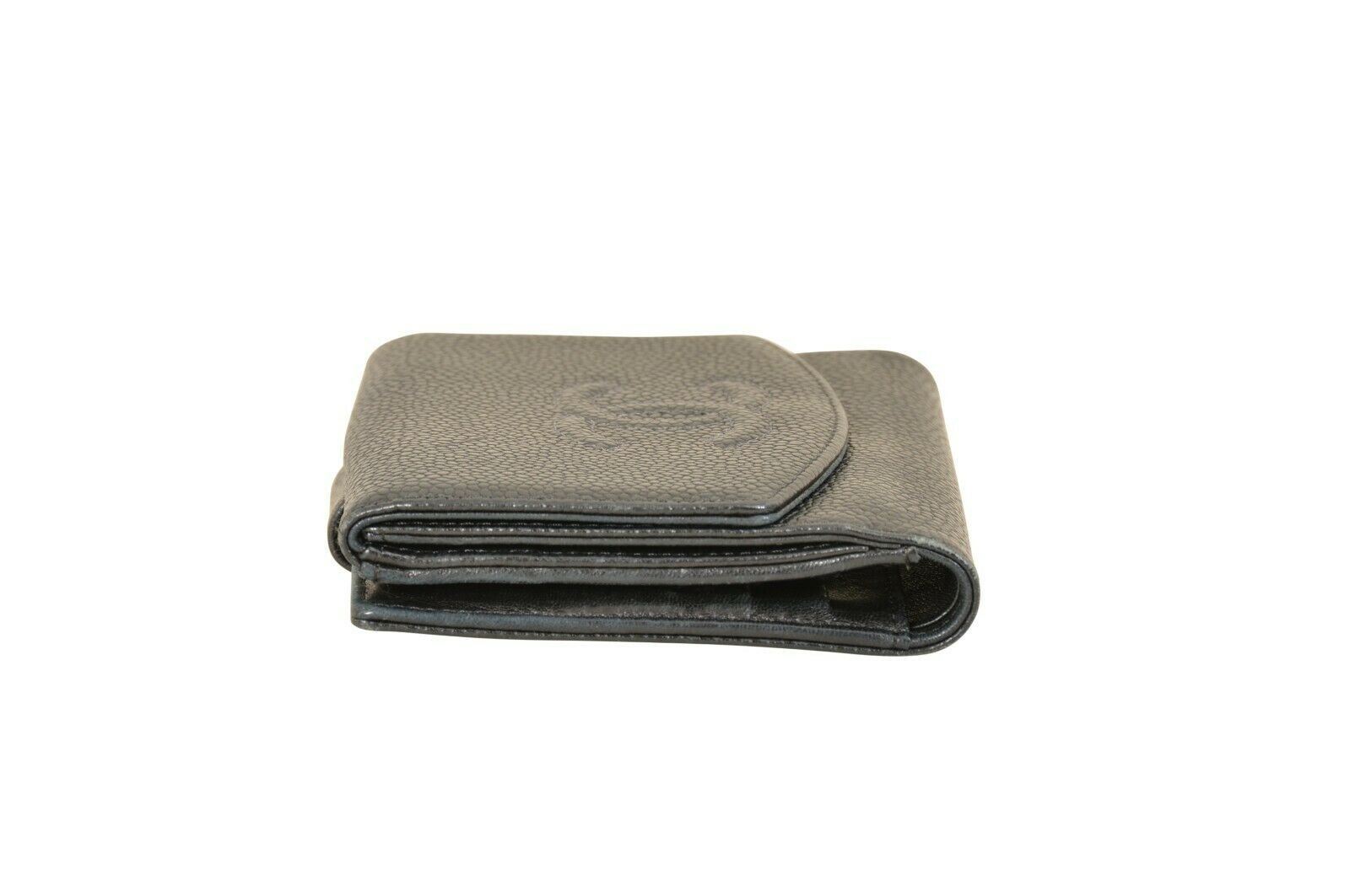 Authentic CHANEL Black Caviar Leather CoCo Mark Folding Purse