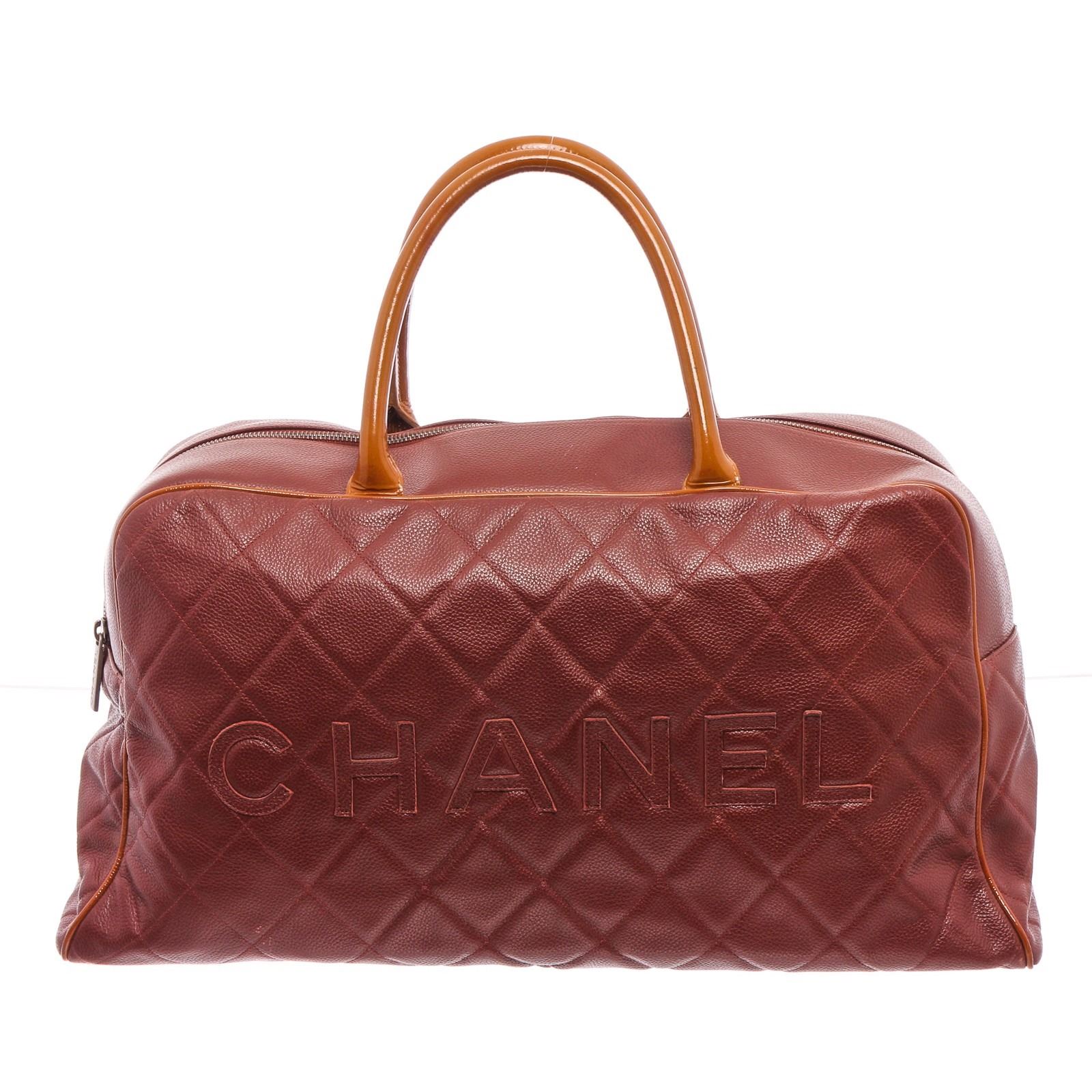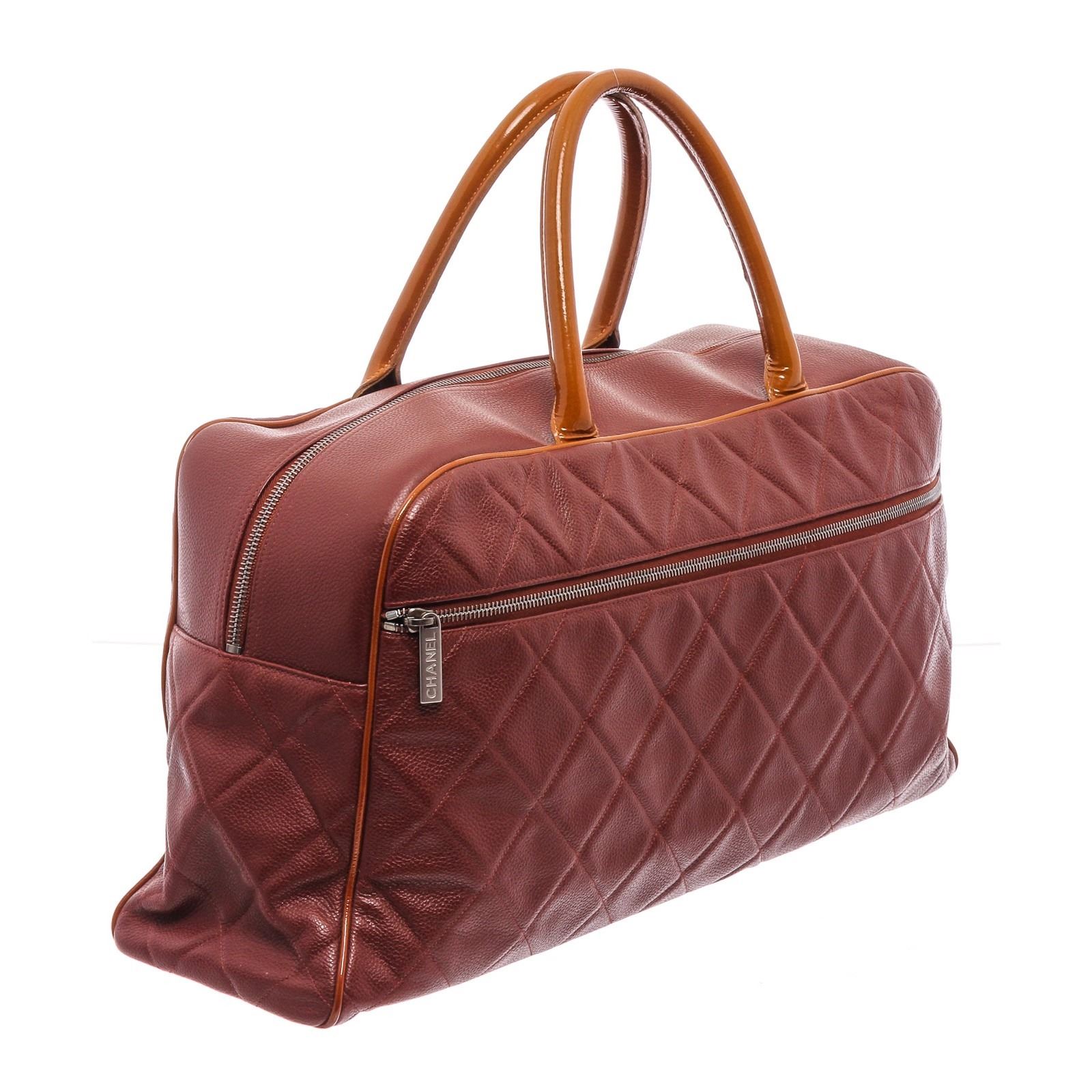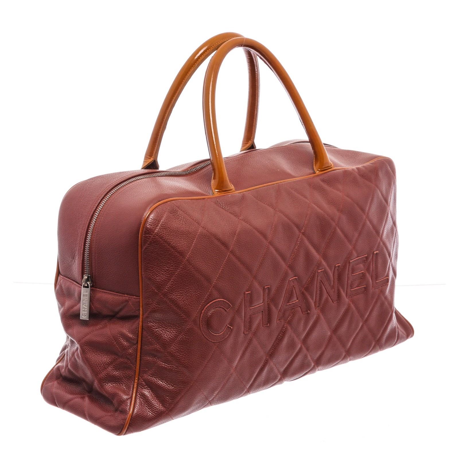 Style: Chanel Brown Quilted Caviar Leather Weekender Tote Bag