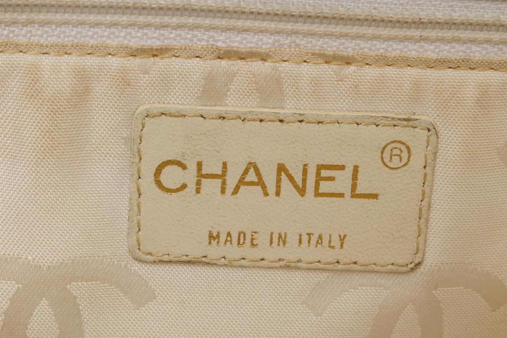 Chanel Chocolate Bar Tote Tote. Brand: Chanel, Style: Chocolate Bar Tote, Type: Tote, Exterior color: Ivory, Exterior material: Patent Leather, Interior color: White, Interior material: Canvas, Length: 15", Width: 4 1/2", Height: 9 7/8". Item is sold AS-I