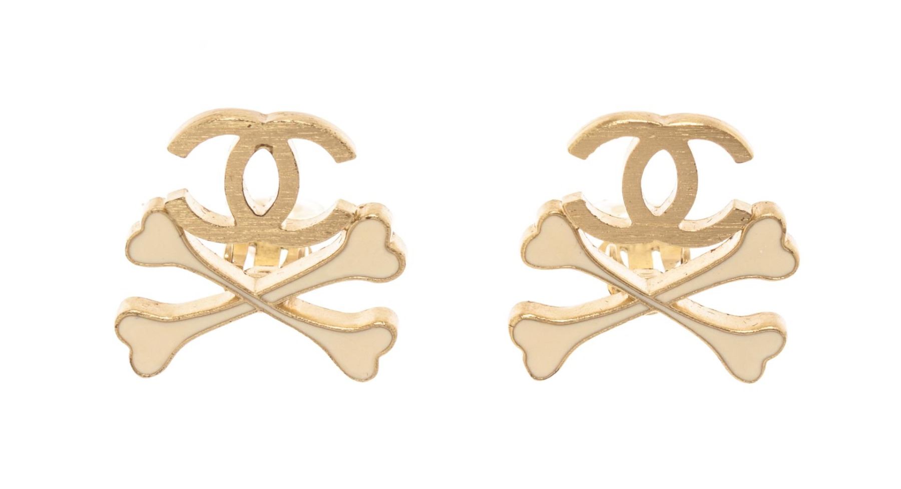 Chanel Coco Crossbone Earrings Gold Plated Metal. Brand: Chanel, Style: Coco Crossbone, Type: Earrings, Exterior Color: Gold Plated, Exterior Material: Metal, Closure: Clip-on.75.75. Condition: Very good. Additional Information: From the 2003 Spring collection. Item is sold AS-IS and all information pertaining to this lot is available in the photos or this description.