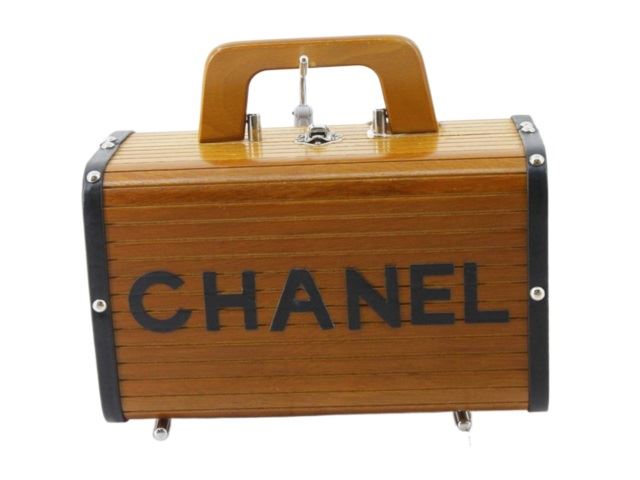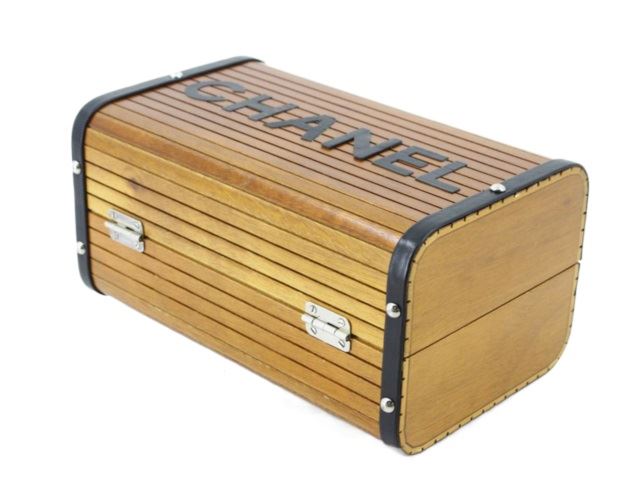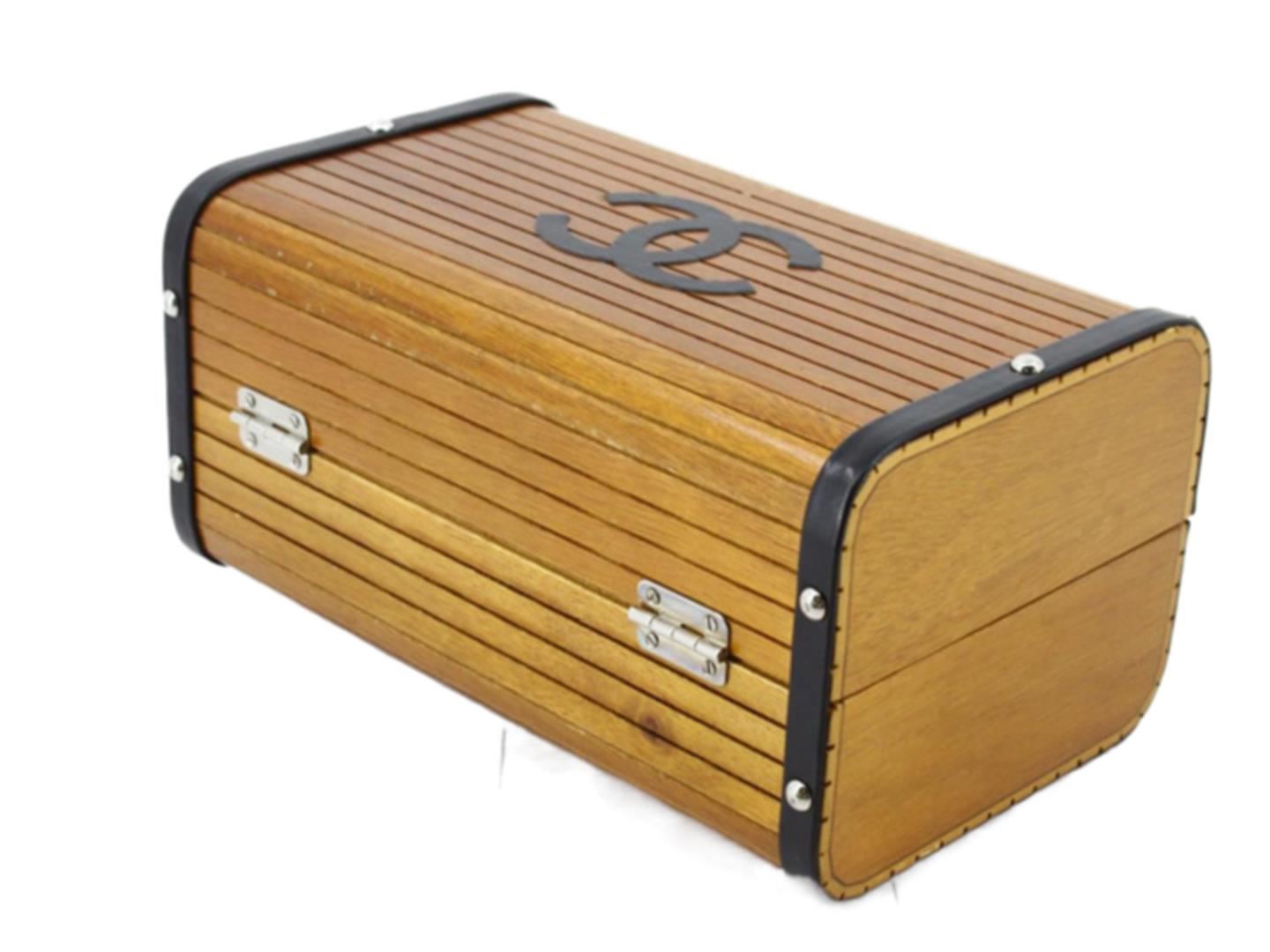 Chanel Cognac Brown Black Wooden Hardware Logo Top Handle Vanity Case. Please see photos and description for all available information! Brown Wood Black