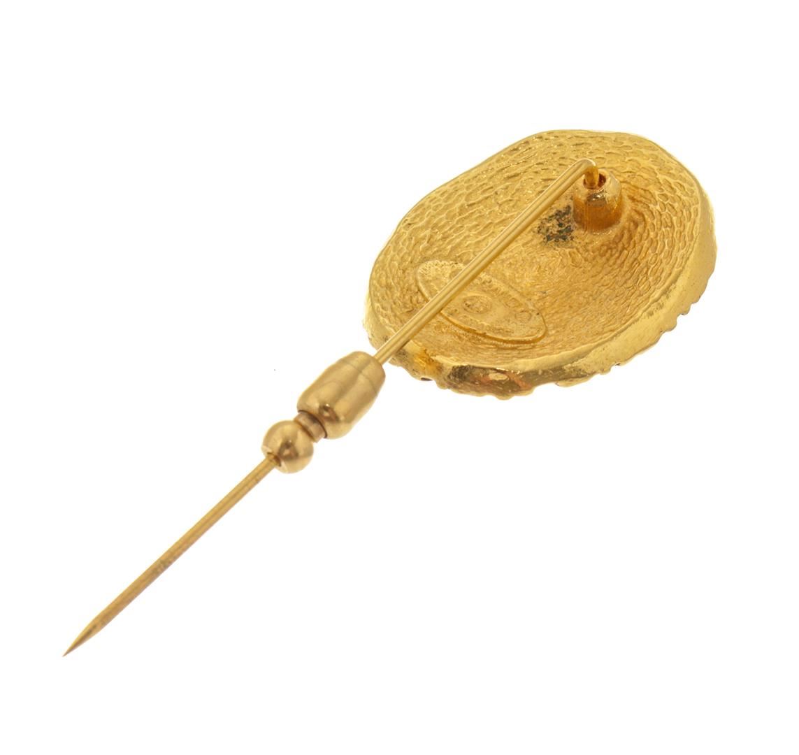 Chanel Crown CC Brooch. Brand: Chanel, Style: Crown CC, Type: Brooch, Exterior color: Gold, Exterior material: Metal, Length: 1, Width: 1, Height: 1. Item is sold AS-IS and all information pertaining to this lot is available in the photos or this descript