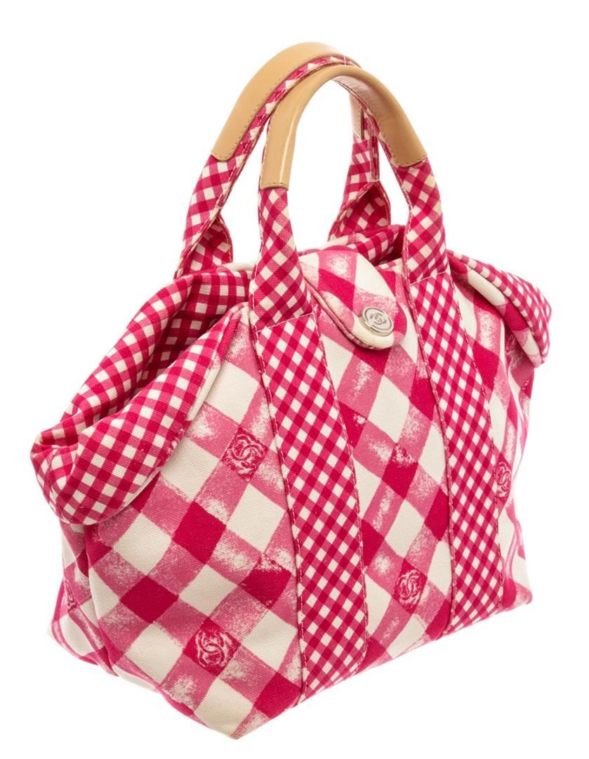 Chanel Cruise Line Tote. Brand: Chanel, Style: Cruise Line, Type: Tote, Exterior color: Pink/White, Exterior material: Canvas, Interior color: Pink/White, Interior material: Canvas, Length: 14, Width: 5.25, Height: 8. Item is sold AS-IS and all informatio