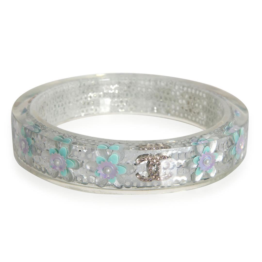 One Chanel Crystal Lucite Floral Sequin Bangle. Item is sold AS-IS. All available information is listed in the description and shown in the photo. Lucie Crystal Sequin
