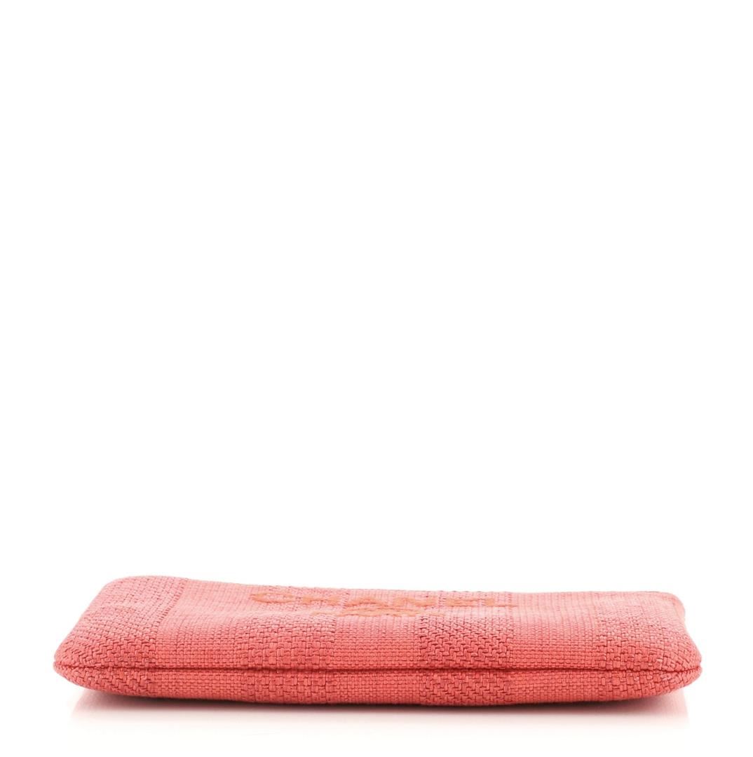 Chanel Deauville Pouch Striped Mixed Fibers Small Red Fiber Condition Details: Slight odor in interior. Discoloration and wear on exterior corners, scratches on hardware. Height ", Width ", Depth ", Strap Drop -