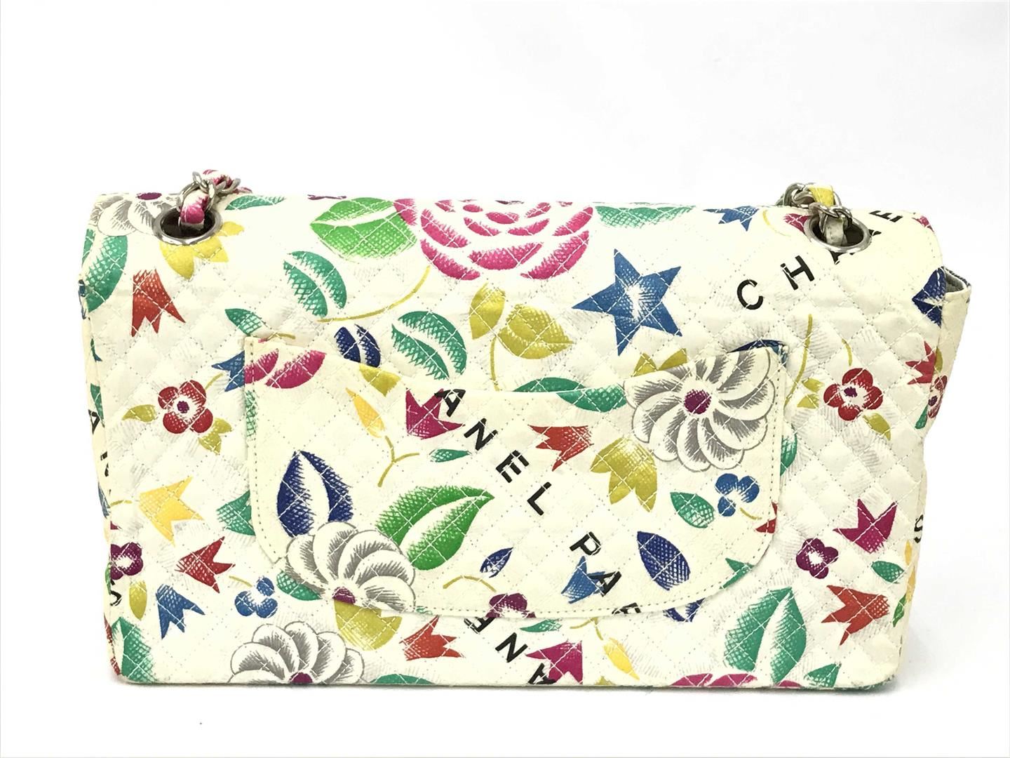 One Chanel Floral Single Flap. Item is sold AS-IS. All available information is listed in the description and shown in the photo. White Printed Quilted Canvas