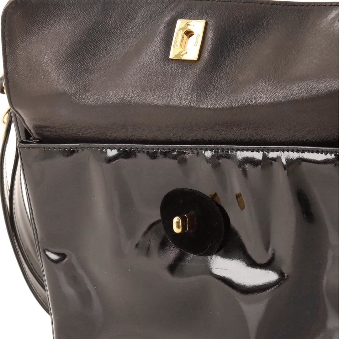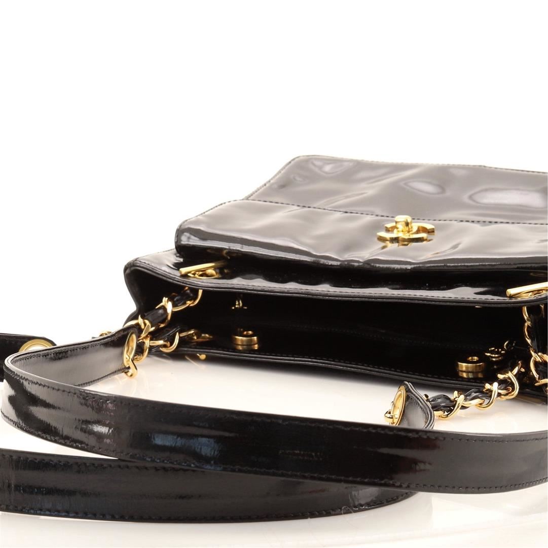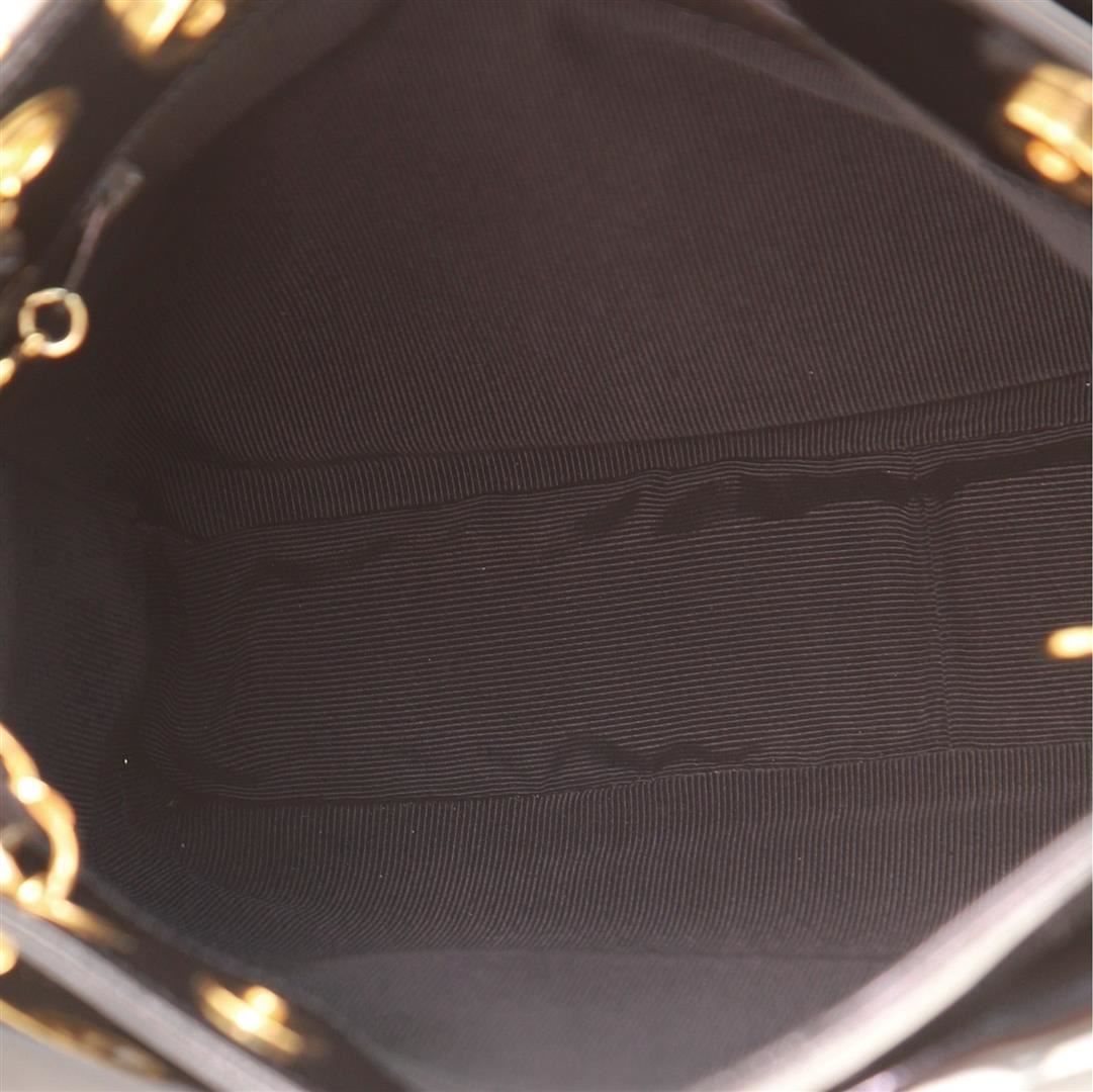 Chanel Front Pocket Chain Tote Tote. Brand: Chanel, Style: Front Pocket Chain Tote, Type: Tote, Exterior color: Black, Exterior material: Patent Leather, Interior color: Black, Interior material: Fabric, Length: 10.5, Width: 2.5, Height: 8.5. Item is sold